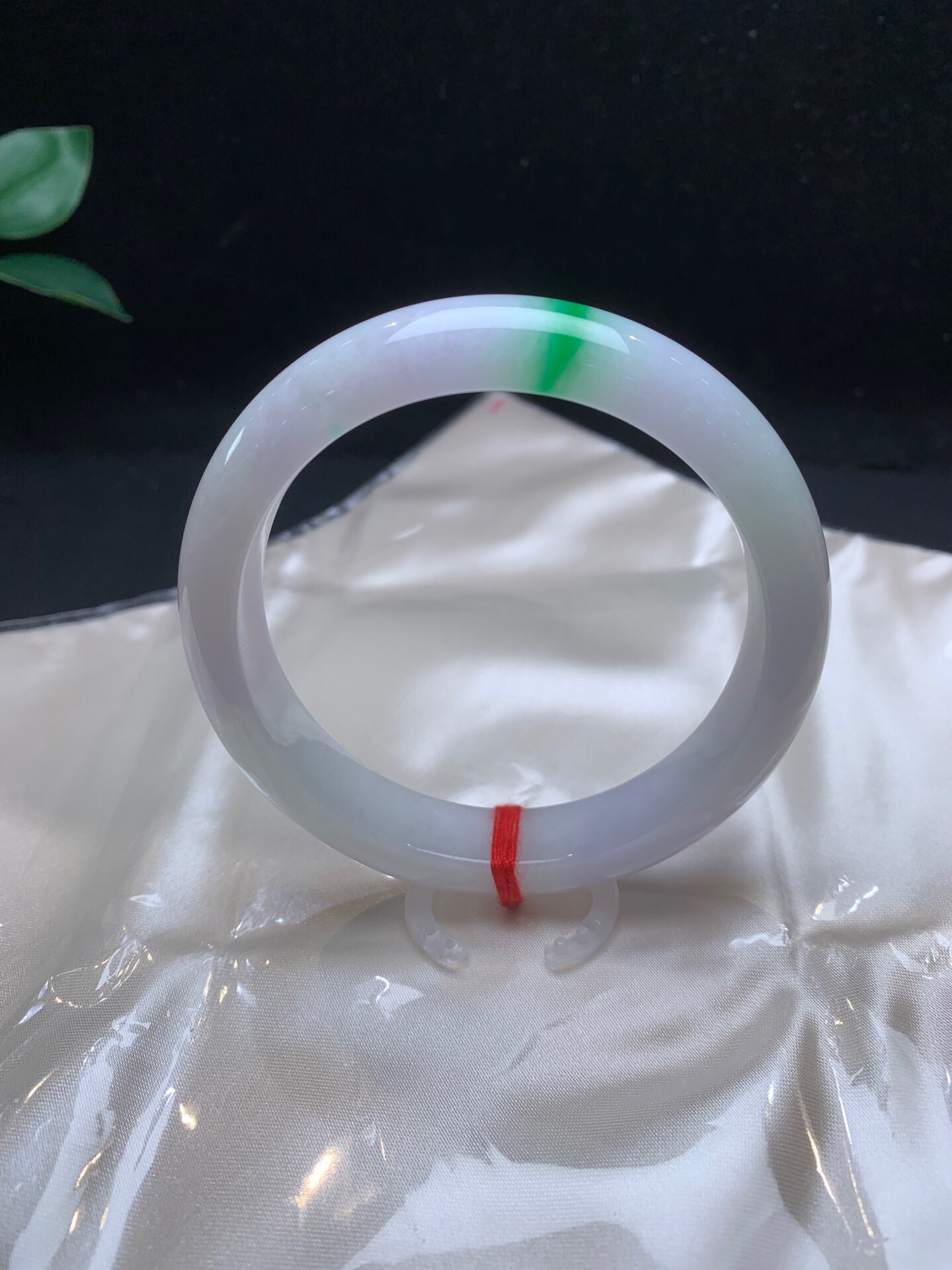 612927,58.8辣绿正圈手镯,12.8-8.8mm,清新白底,飘一抹辣阳绿,干净清爽,很养眼,完美。超值价💰64300 #优石客珠宝#香玉荟萃