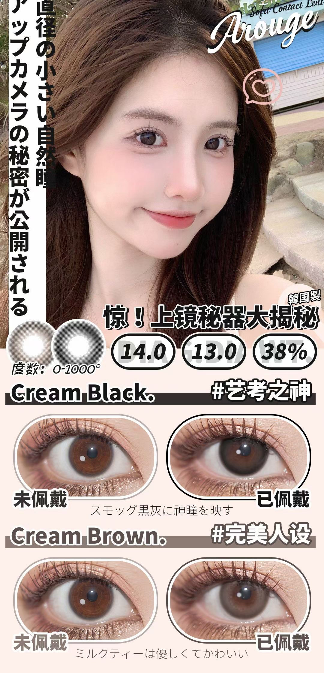 Arouge2024新款 艺考之神/完美人设 染色13.0mm 咋就是一整个为小眼打造;年抛/硅水凝胶材质