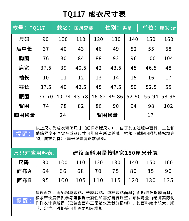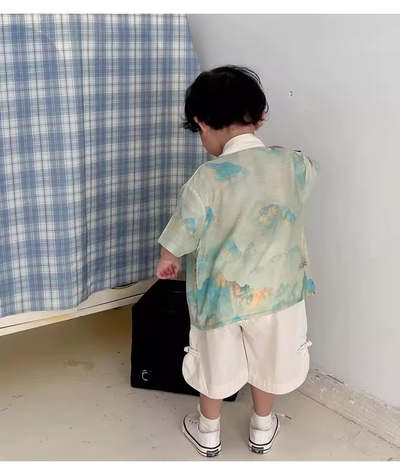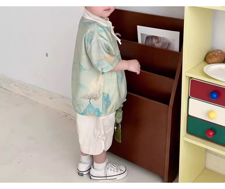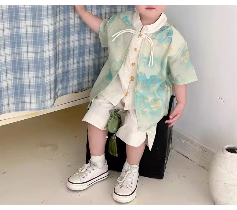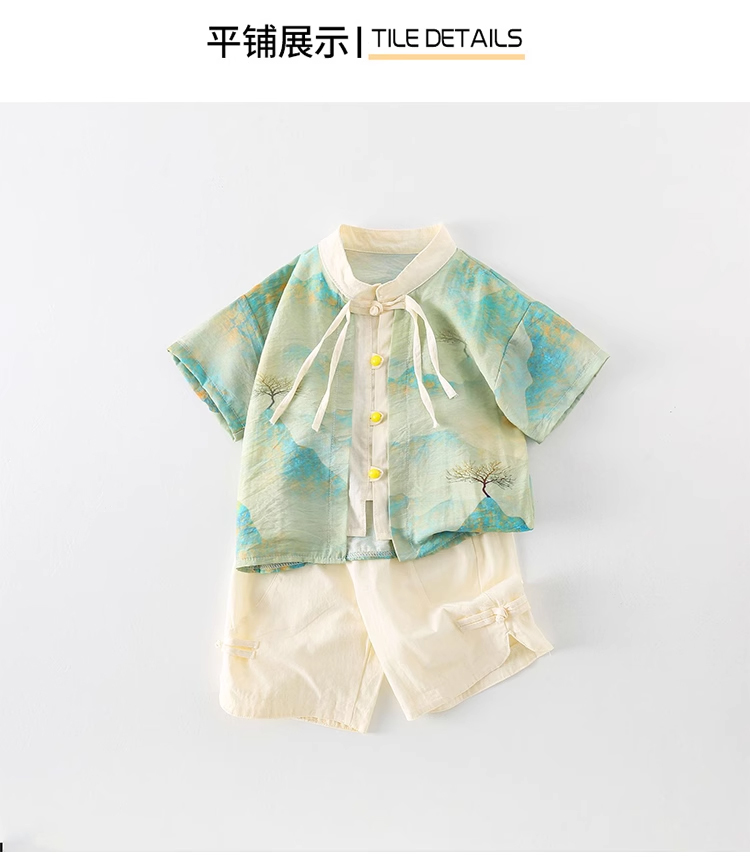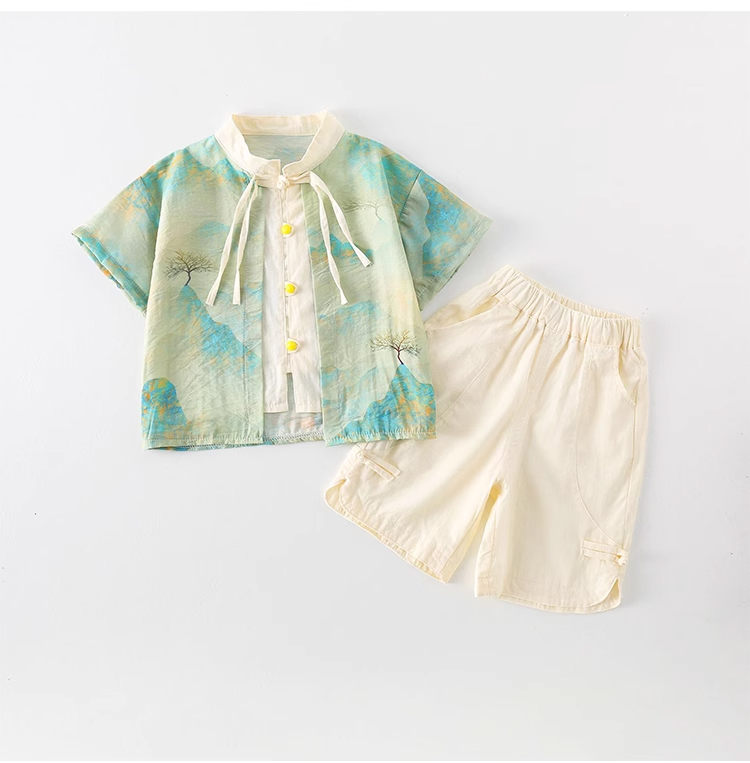 裁缝学苑TQ117 新中式儿童短袖衬衫纸样短裤国风童装做衣服汉服套装