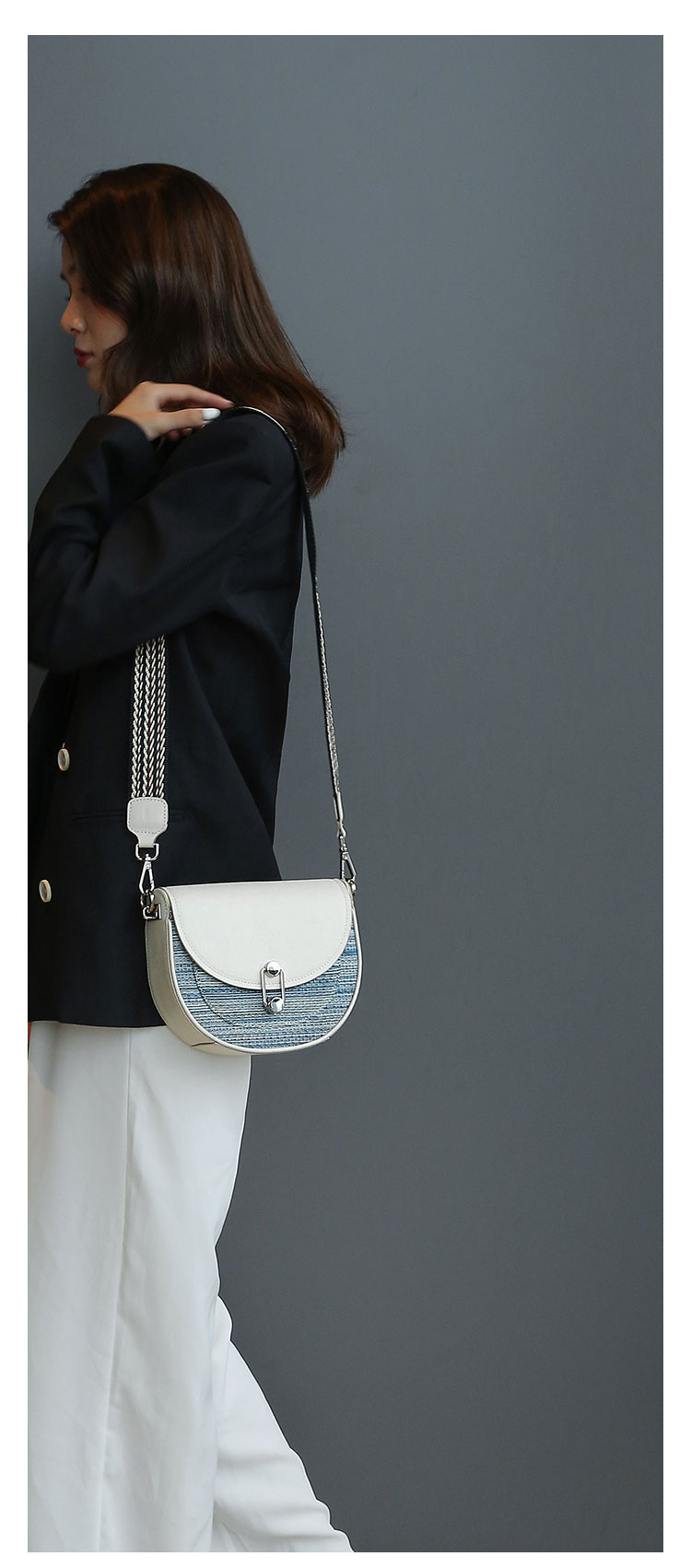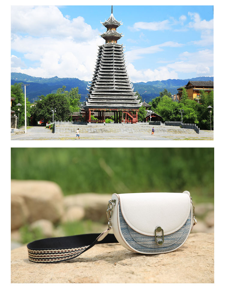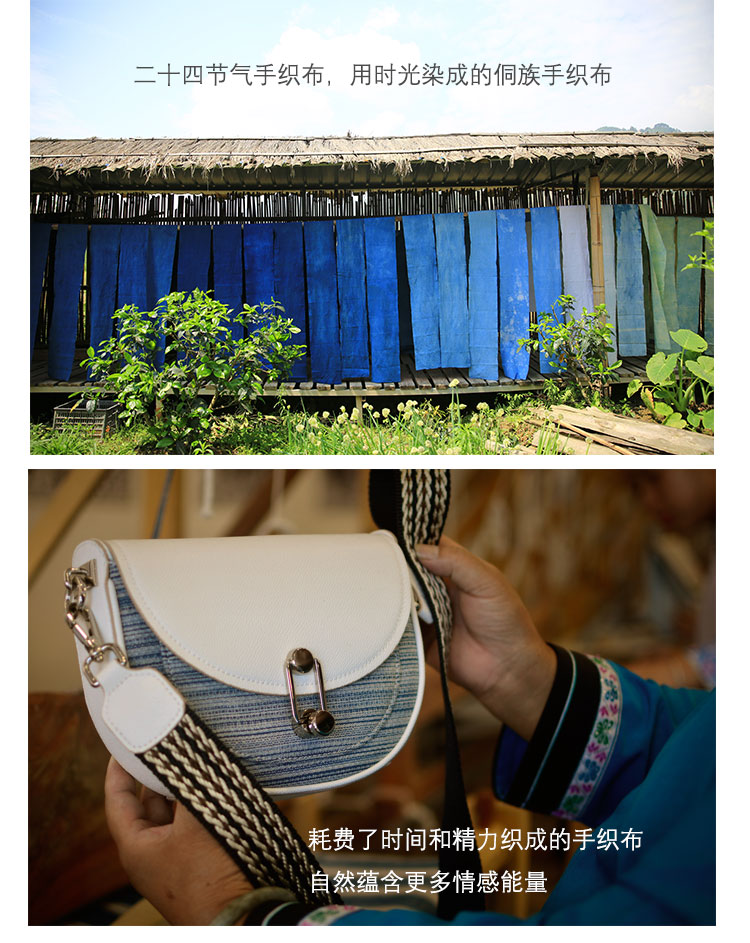 饮水鸟非遗侗族手织布囧囧有神百搭包 马鞍包 沧海明月/黄花鸢尾