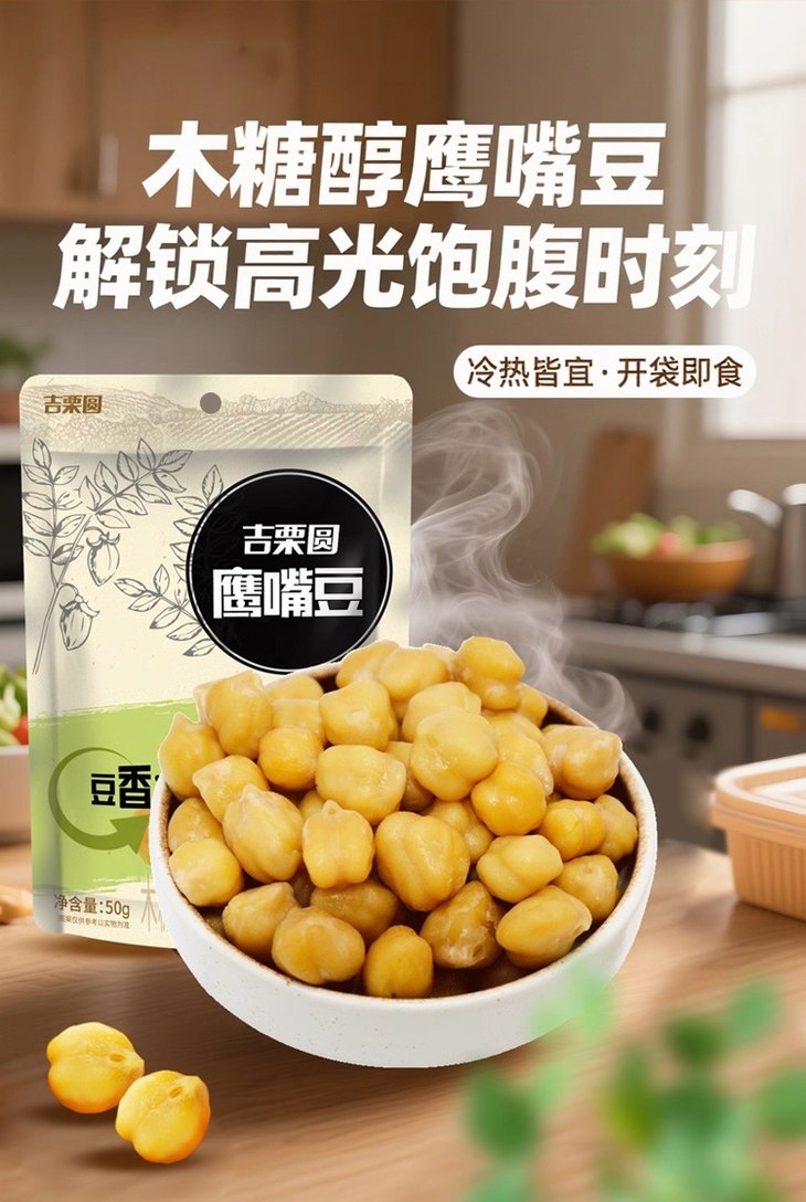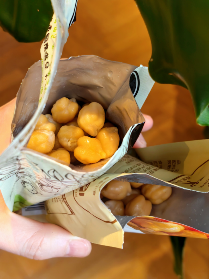 吉栗圆的小袋鹰嘴豆,有原味和五香味,每袋50g,刚好是一餐的坚果量。圆滚滚的金黄色小豆子,看着就十分喜人,几乎每一粒都非常完整饱满,吃起来像小栗子,口感绵软,还带着微微的甜,每次一小包,开袋即食,健身露营,或是带娃外出也可以带上,既解馋又能顶饿。做成减脂沙拉、鹰嘴豆泥、茄汁鹰嘴豆就更赞了,还可以搭配其他坚果打豆浆喝,低脂高饱腹,还富含优质蛋白、膳食纤维,绝对是减脂人的最佳主食!