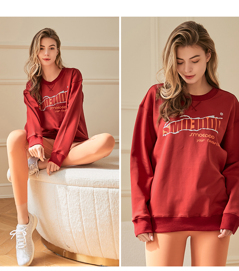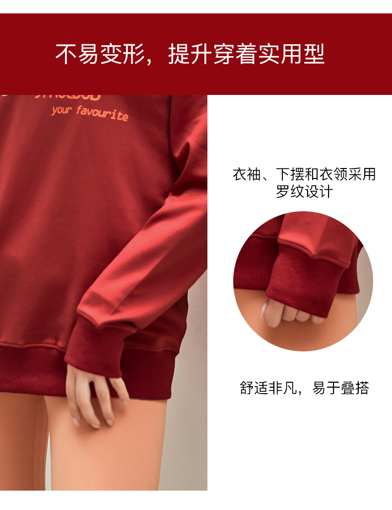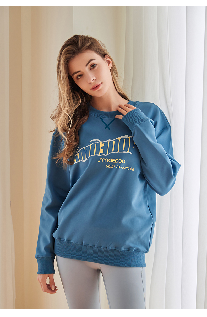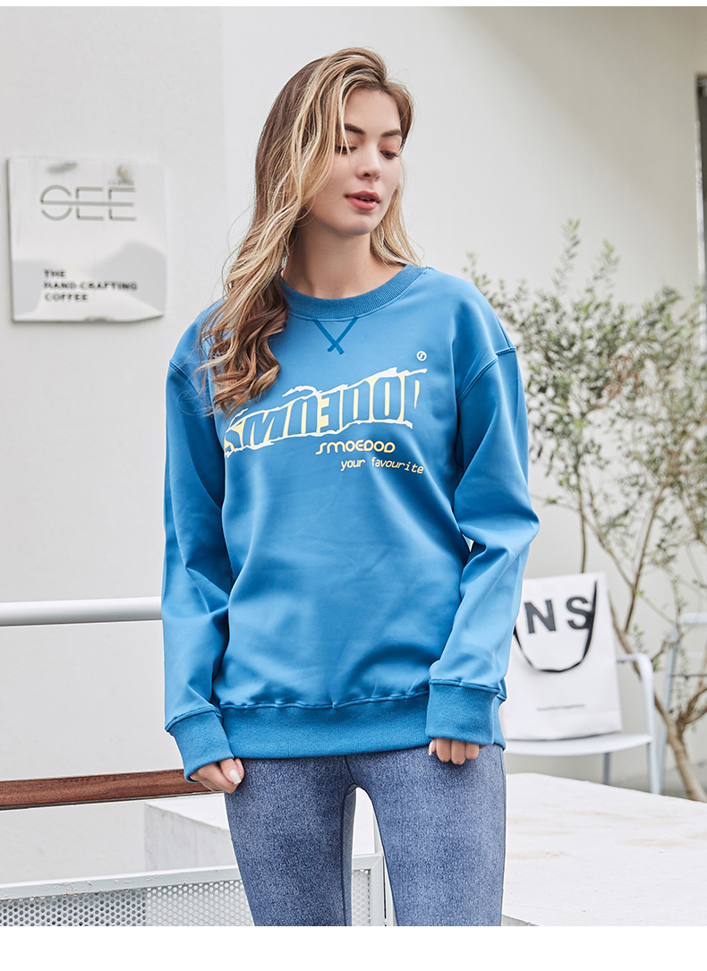 水沐伊朵2021秋冬新款卫衣女圆领宽松罗纹松紧口长袖上衣5683