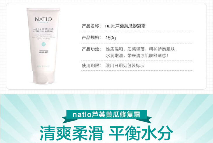(永久下架)澳洲NATIO娜迪奥 芦荟黄瓜晒后修复乳 150ml