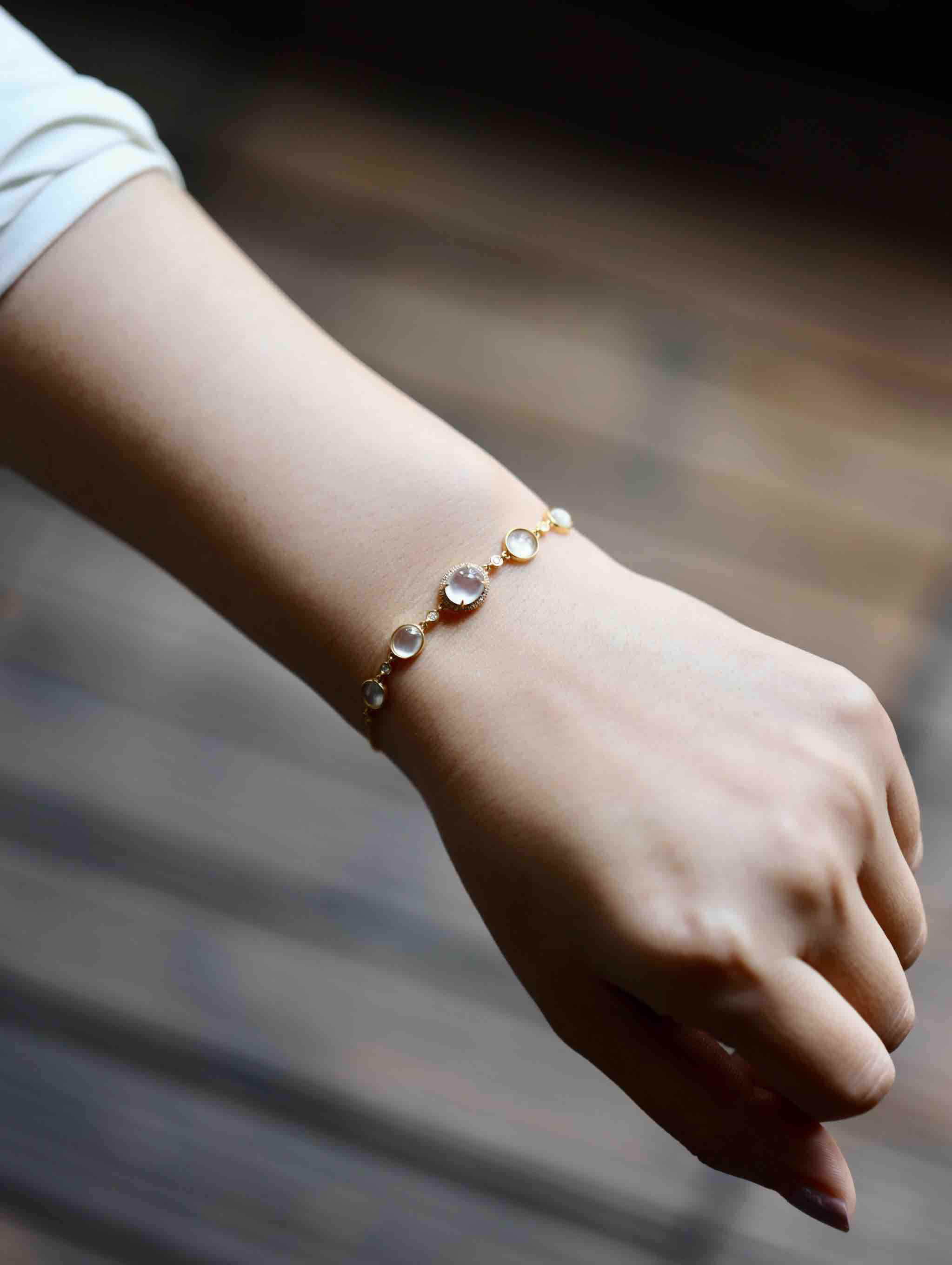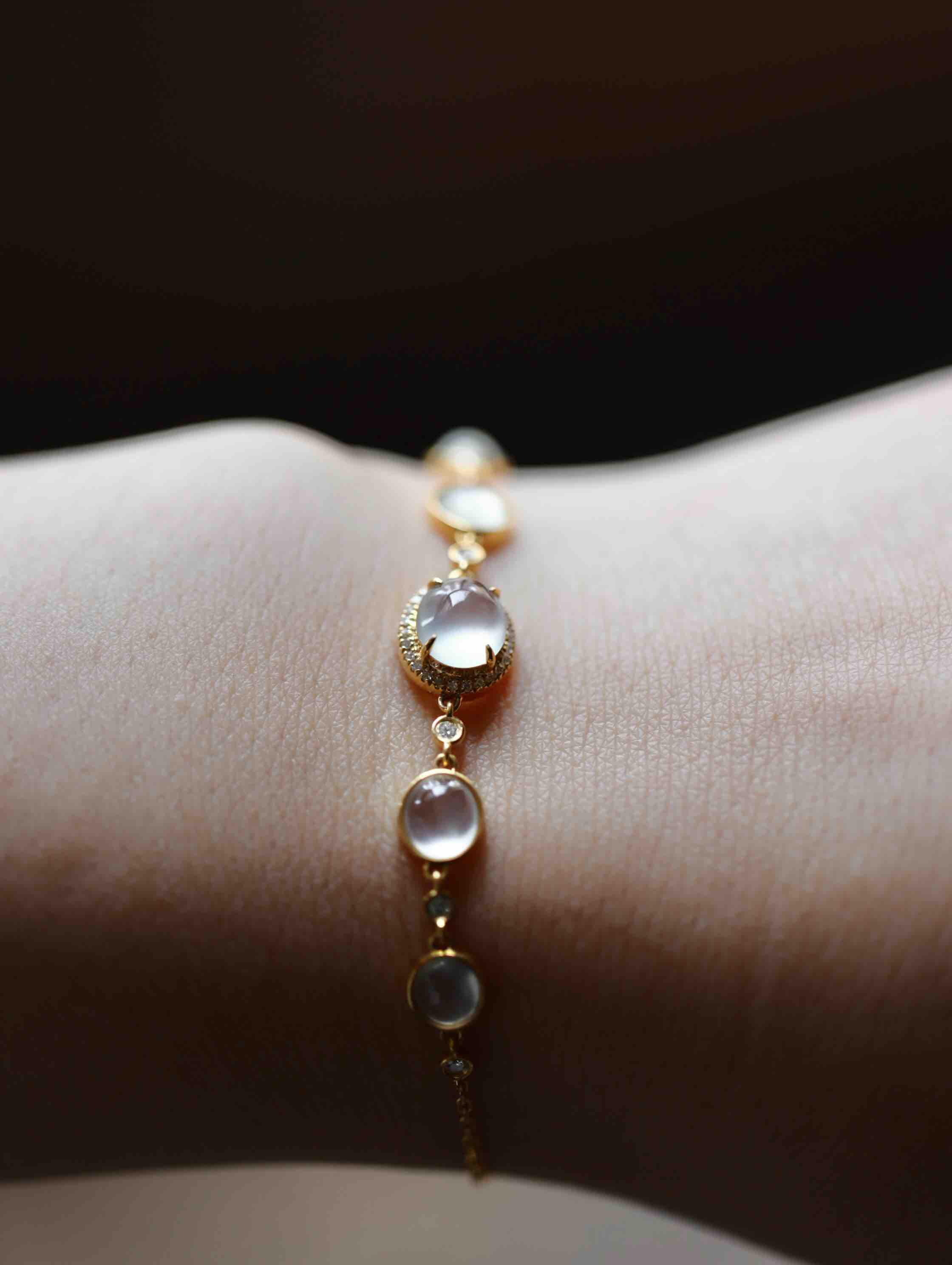 玻璃种翡翠蛋面手链18k黄金钻石镶嵌