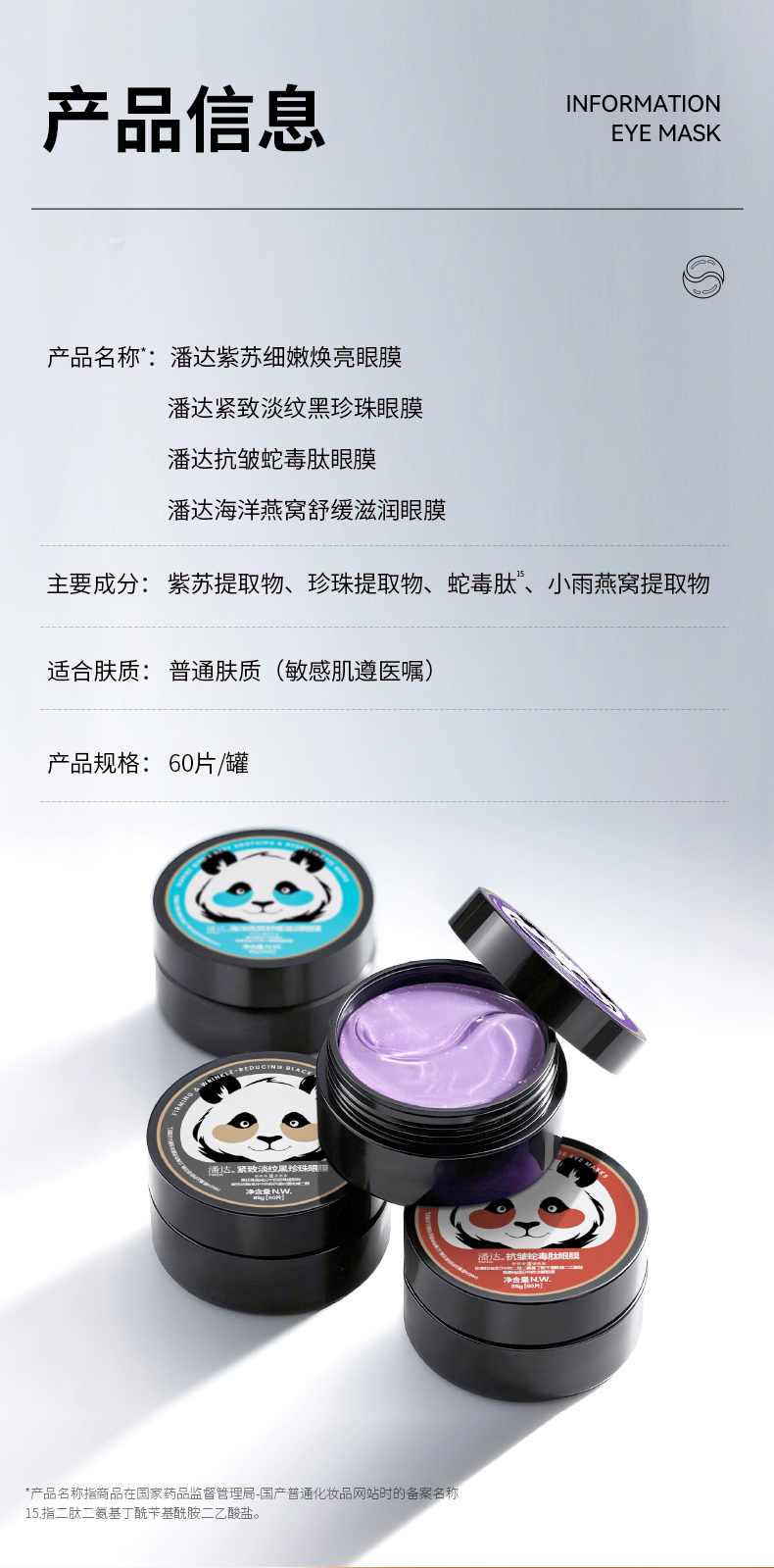 【下单反10❗❗39.9任选2件】潘达紫苏眼膜贴60片黑珍珠蛇毒肽抗皱紧致眼周舒缓保湿官方正品