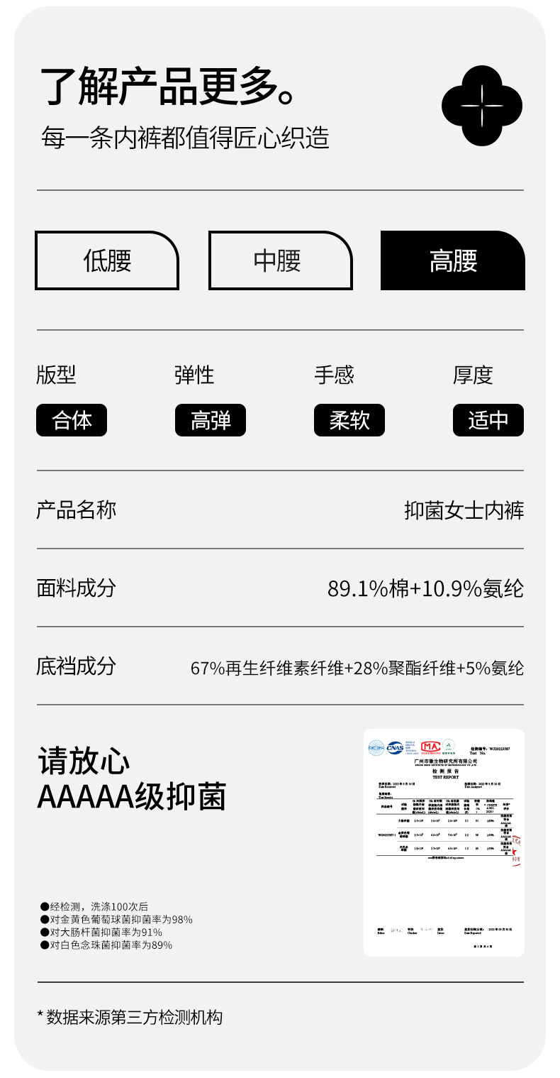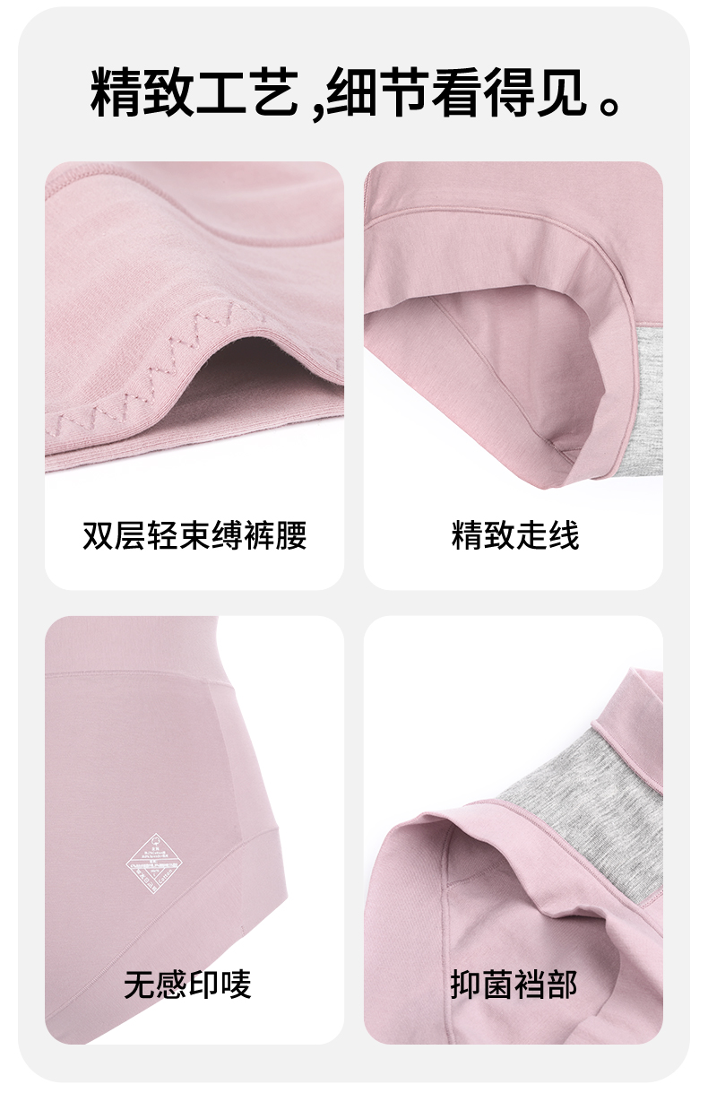 【女士高腰精梳棉内裤 】 60S新疆棉 5A级高弹舒适透气 高腰收腹 提臀无痕 优雅双纯色可选