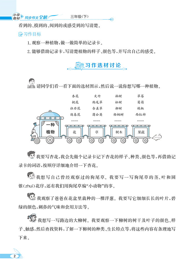 卡通聊话题:鲜活的卡通人物,带我们进入作文大课堂,通过互动交流,开启学生的选材思路,解决;写什么的问题。