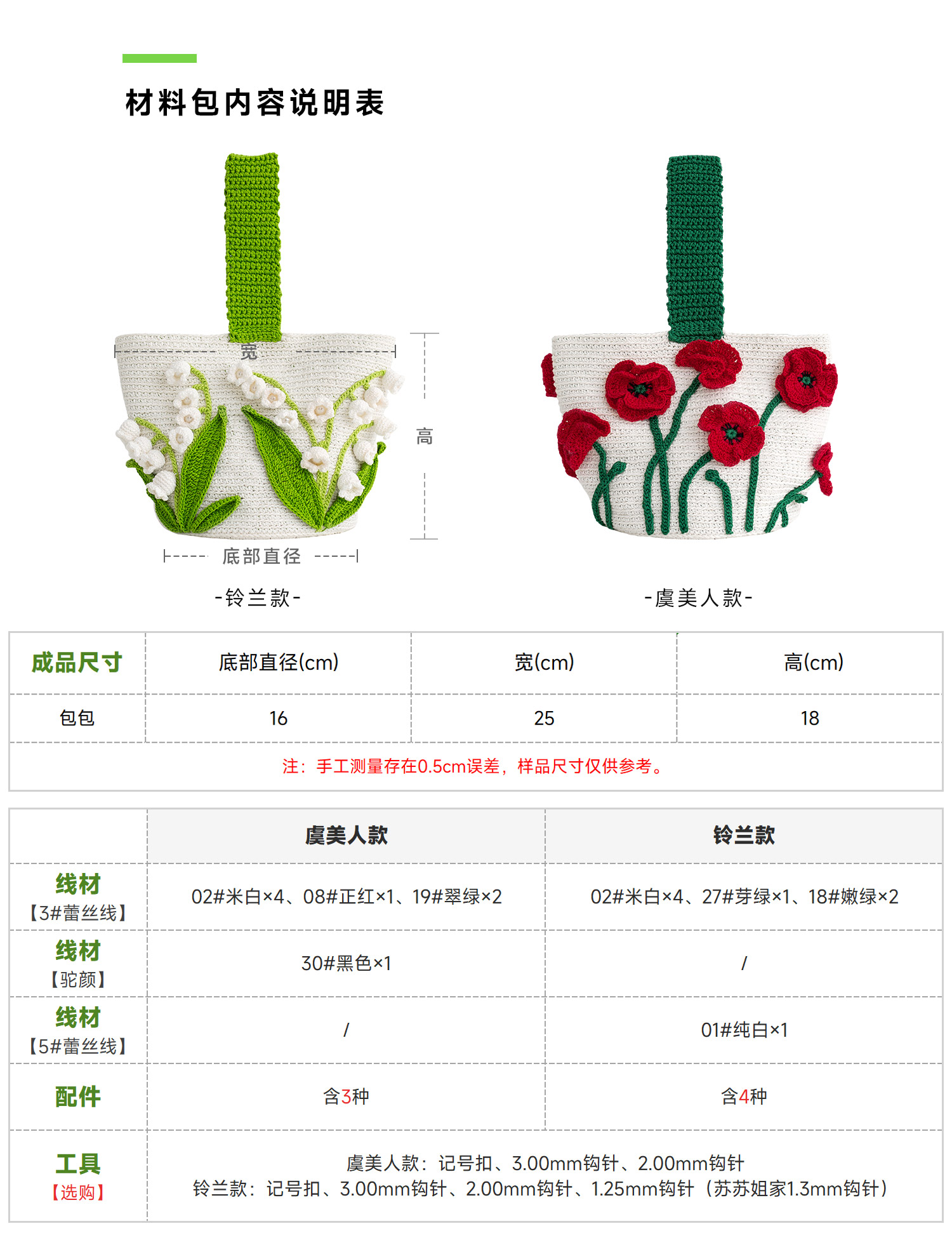 苏苏姐家花卉绮韵立体花水桶包钩针手工diy蕾丝线毛线团材料包