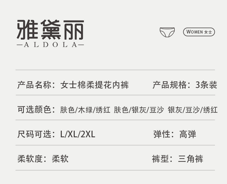 雅黛俪女士内裤柔软舒适透气纯棉裆底三角裤头