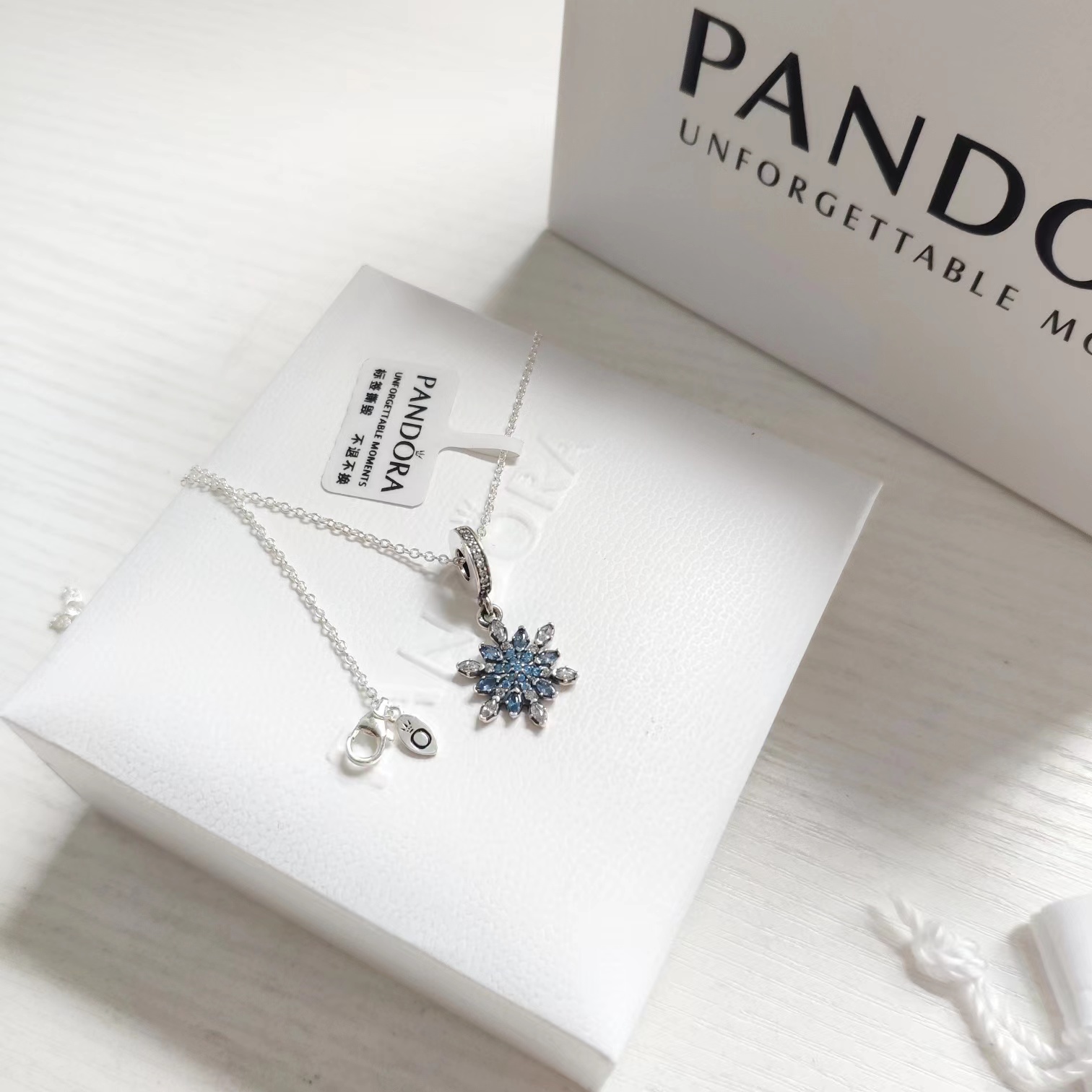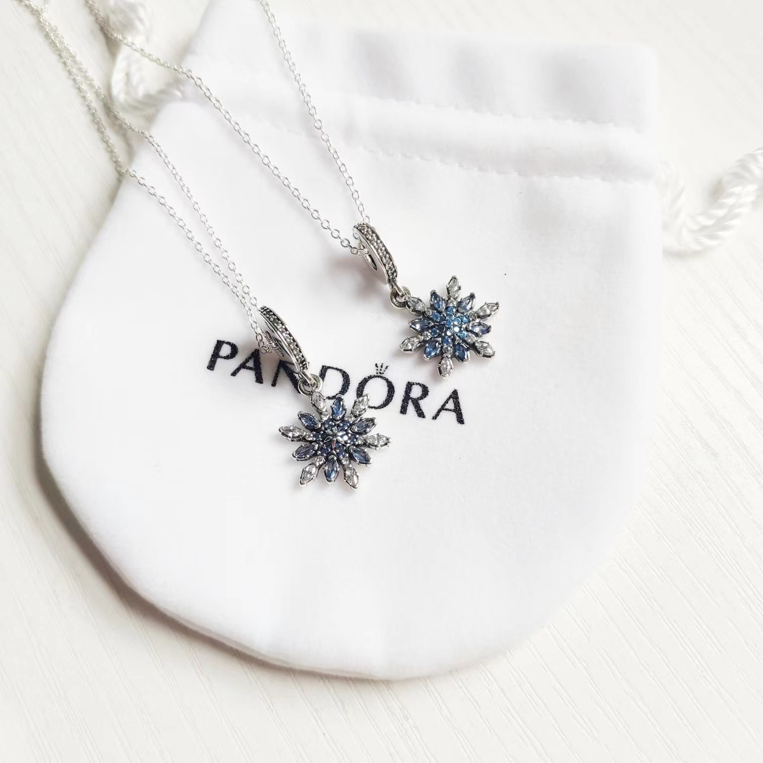 通体925银蓝色雪花项链锁骨链小仙女B备的一款超jing致的项链蓝色的亮钻就像雪花一样晶莹剔透 从花蕊到醉外层花瓣每一层锆石的颜色都不一样由深至浅由蓝色渐变到白色光线下bulingbuling的感觉仙气十足美到不行长短可调 自留 送礼B备