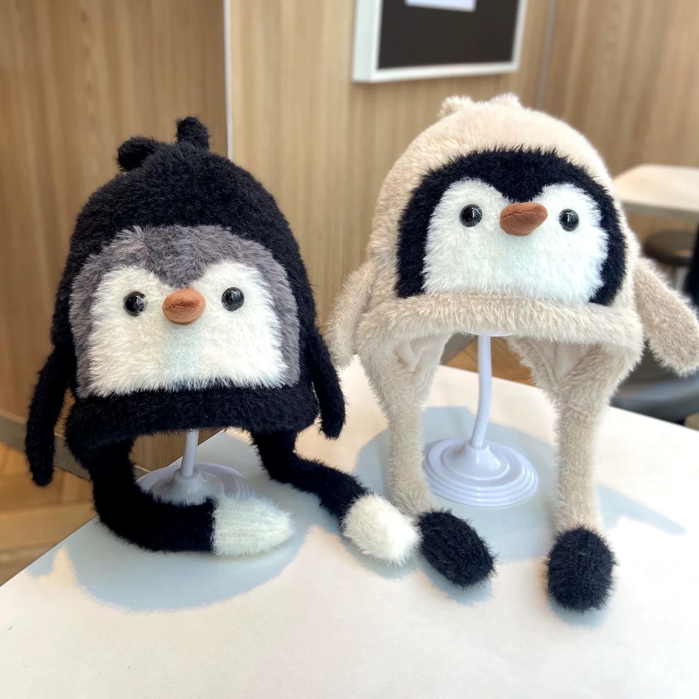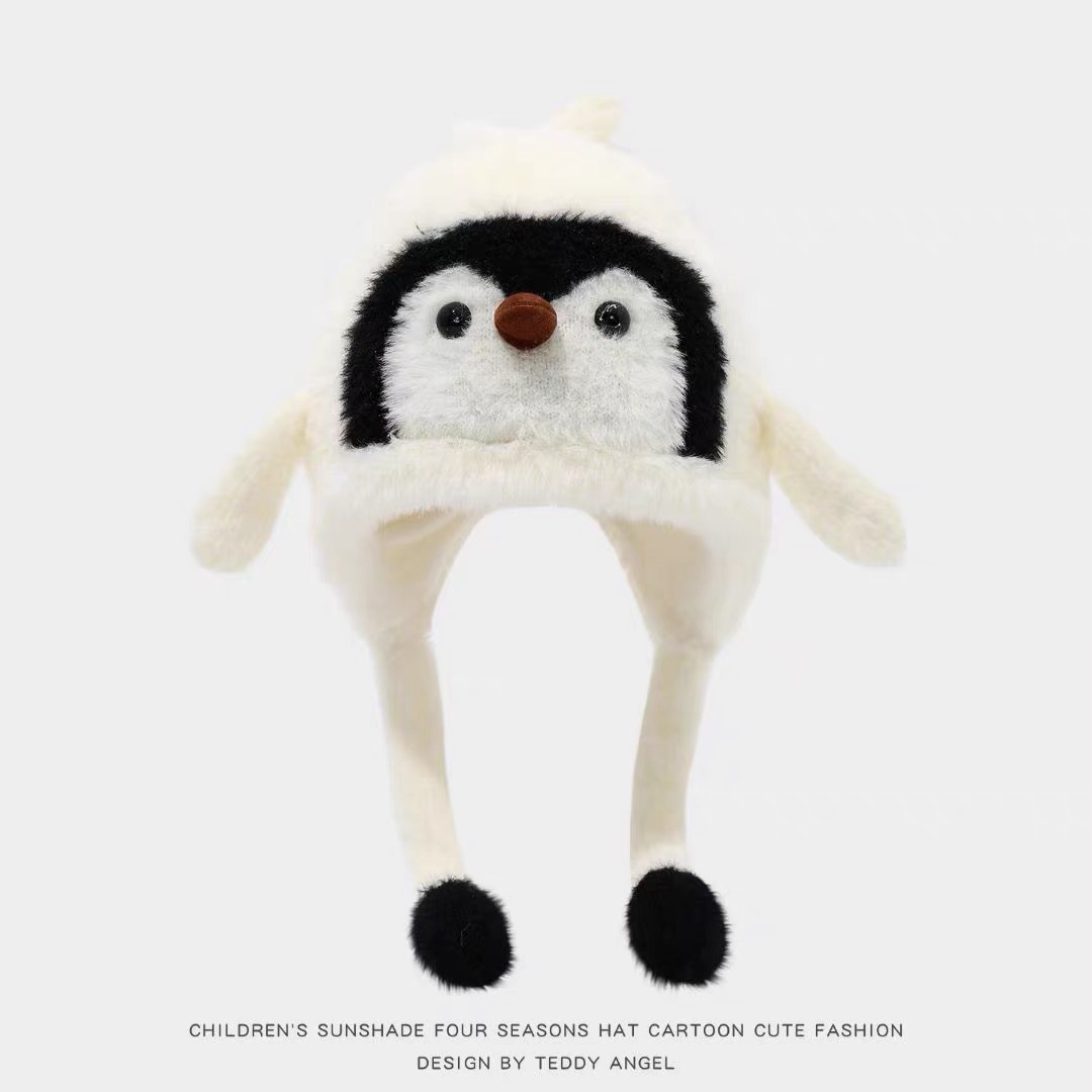【捏捏响❗️萌萌企鹅包头帽】韩系潮童标配,防风保暖,毛绒柔软超舒适,冬季韩系男女童护耳帽户外保暖防风儿童毛绒帽子QQ