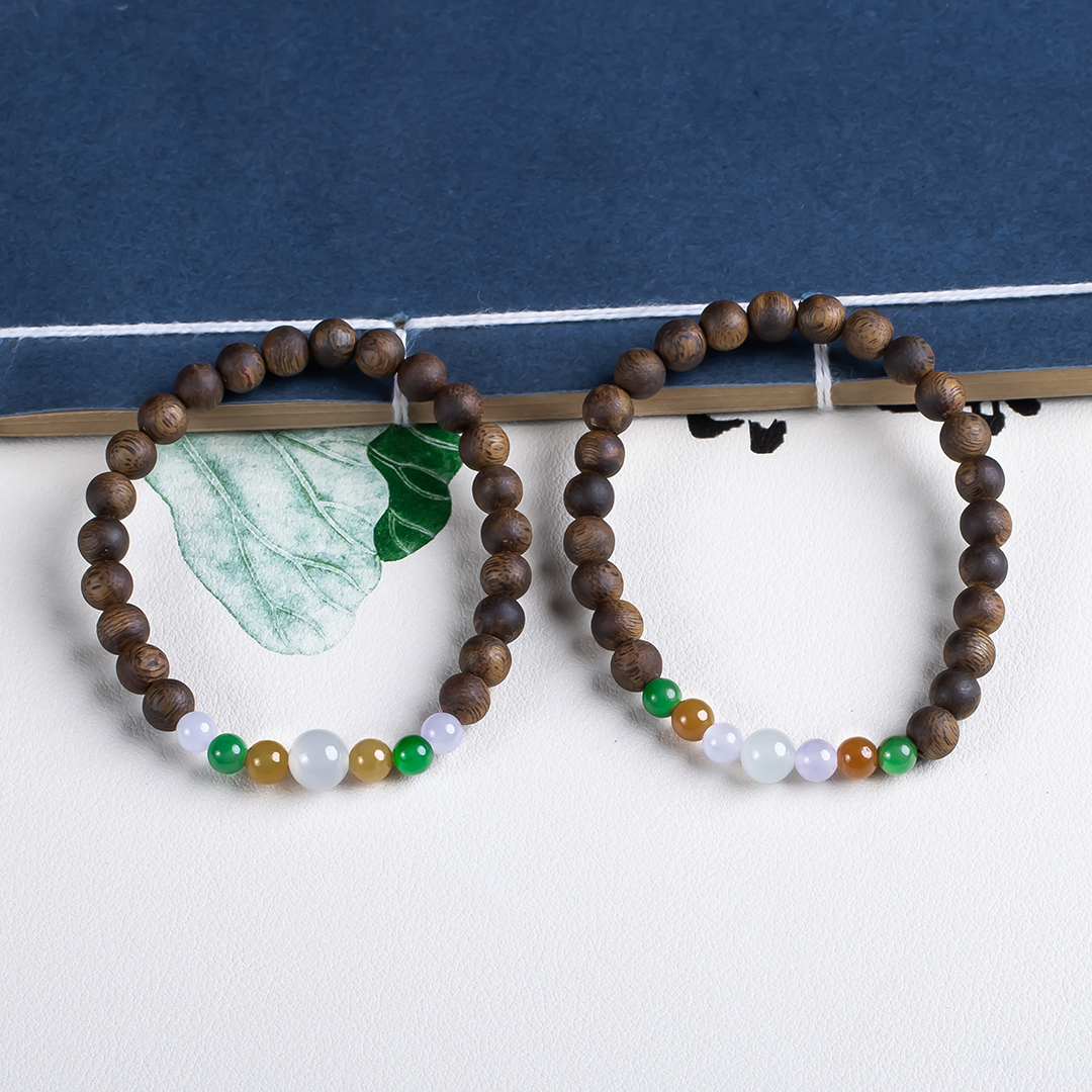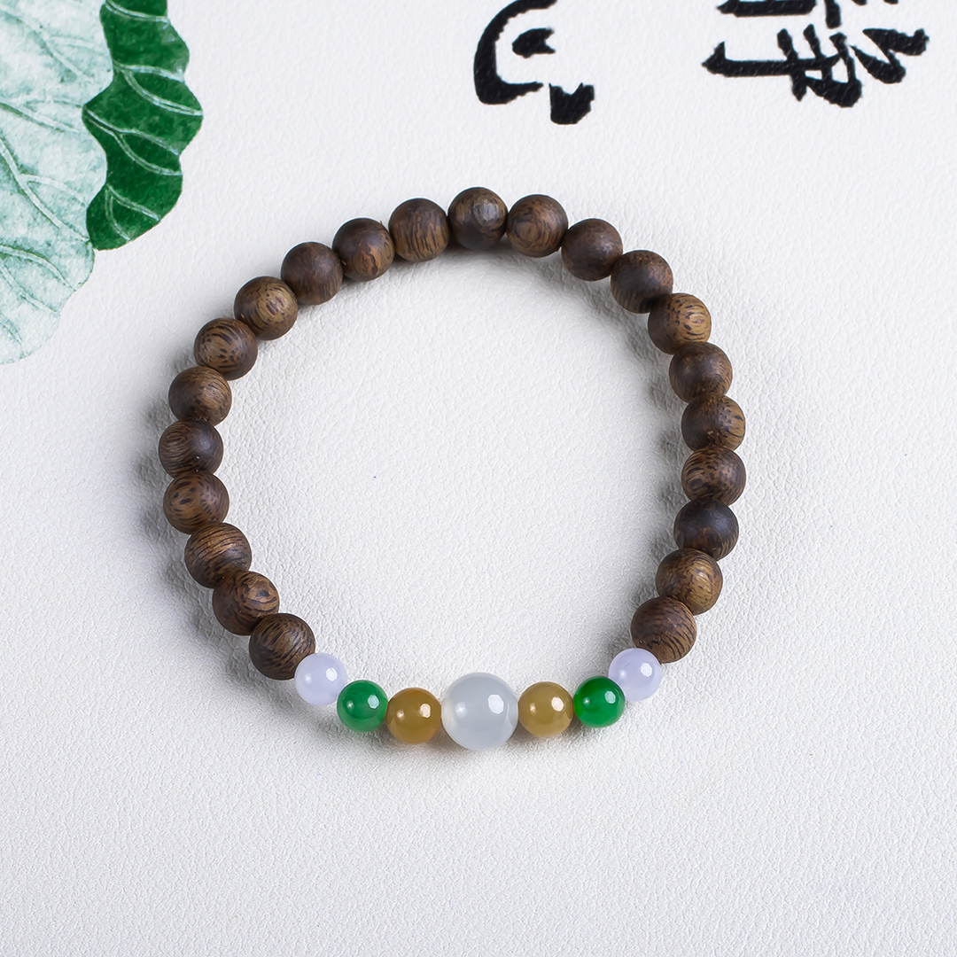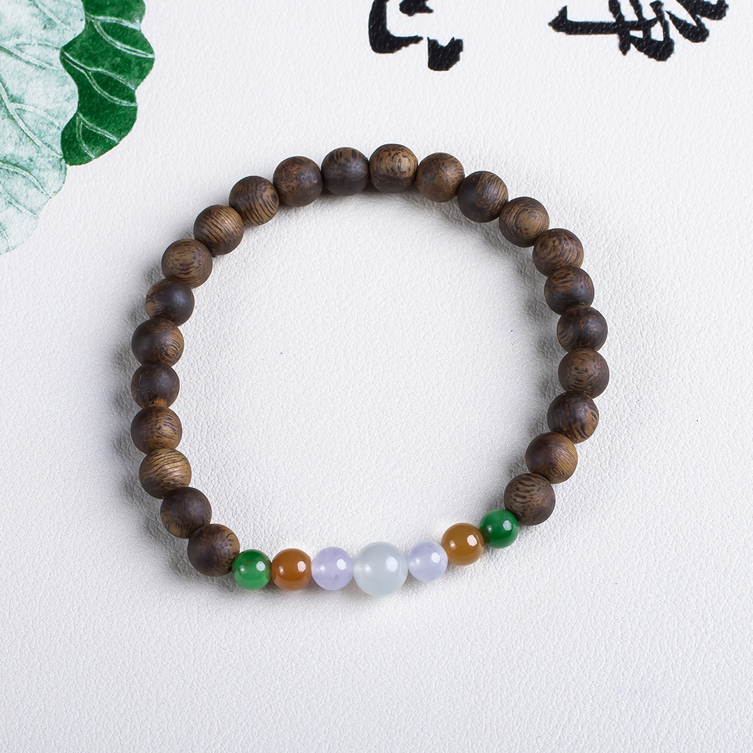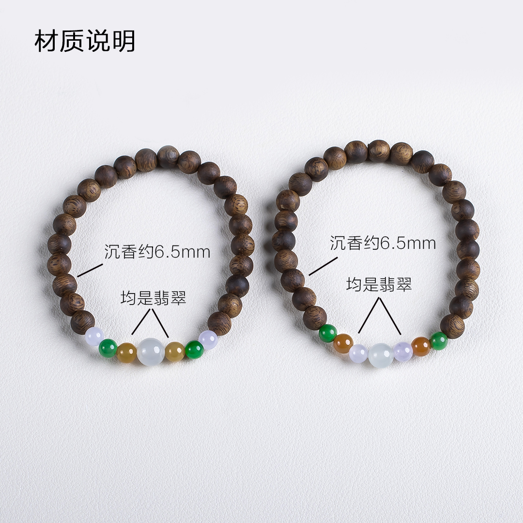 xy0646,沉香+多彩翡翠单圈手串,天然奇楠沉香6.4mm,原色原味,香味自然清甜,精挑多彩翡翠穿搭,新中式之美,古朴时尚之美,香玉在手,养神养身,气质加分。520元/条