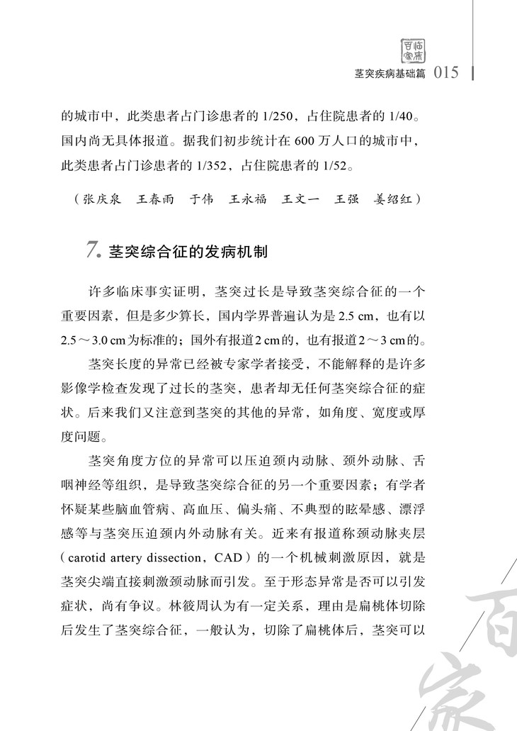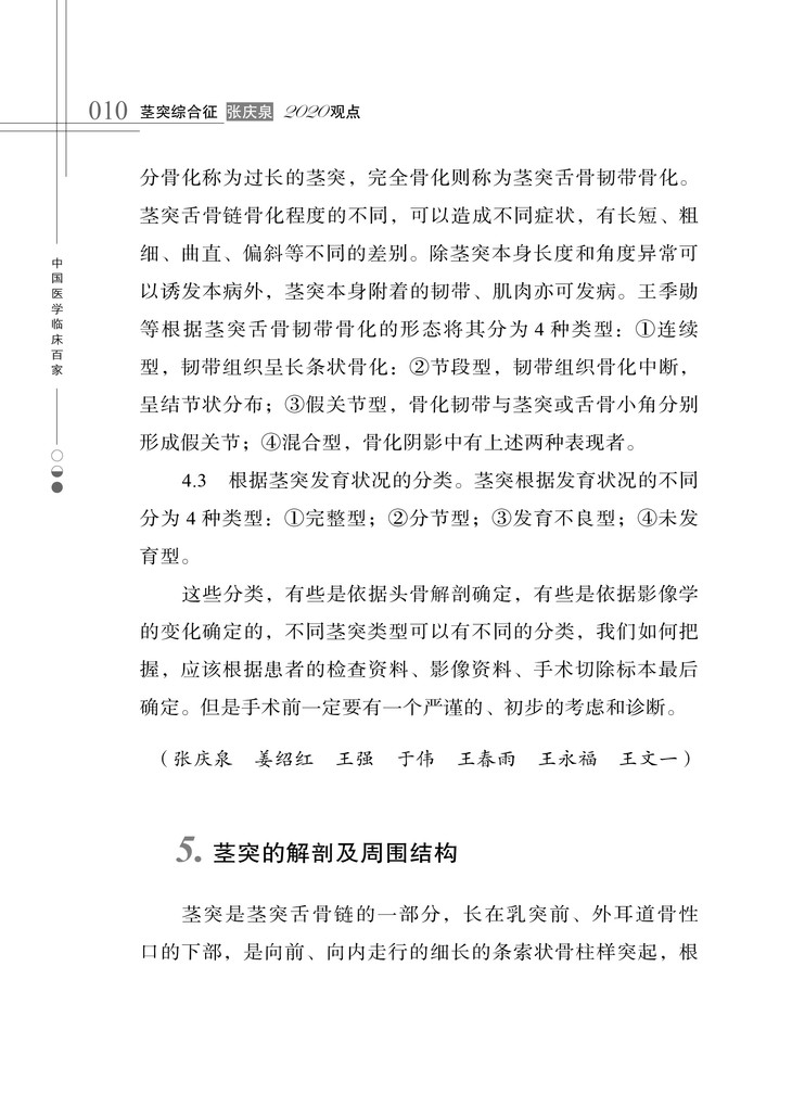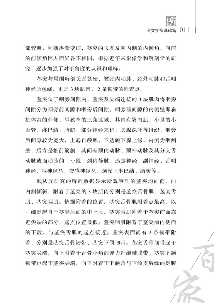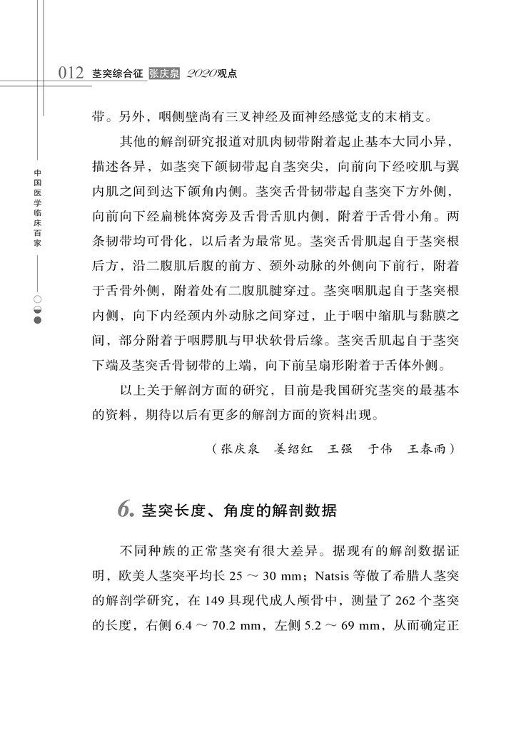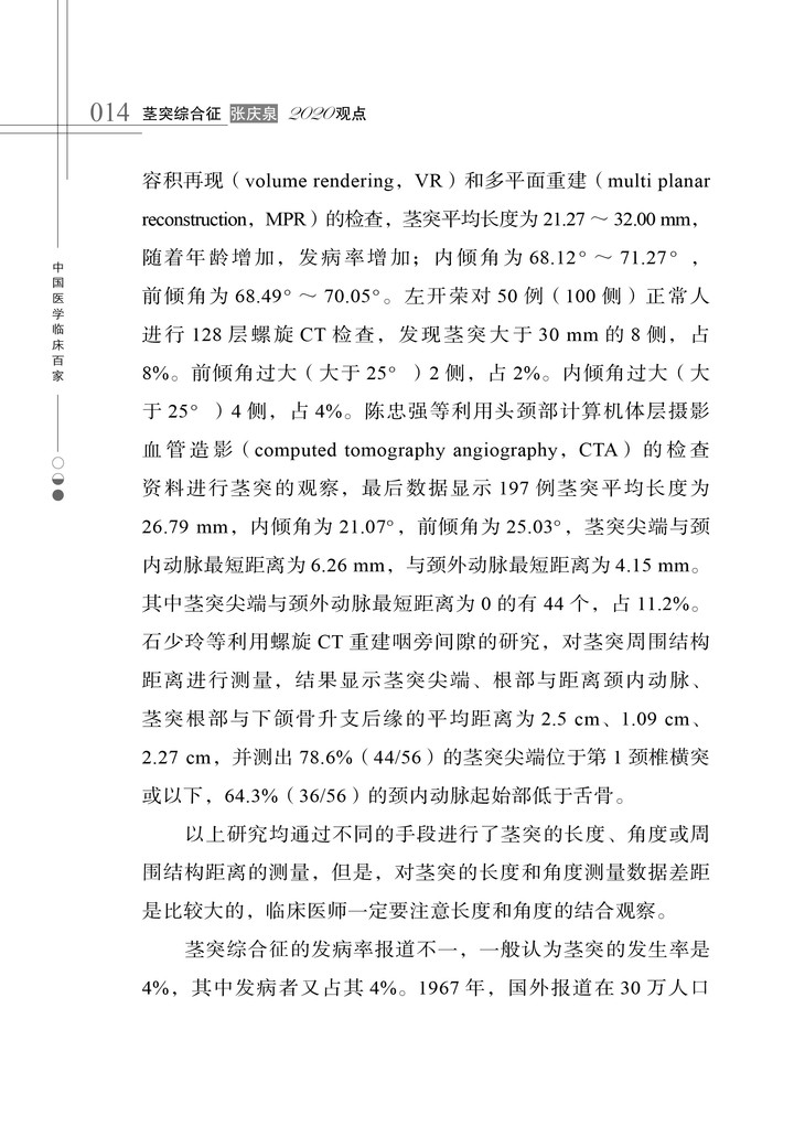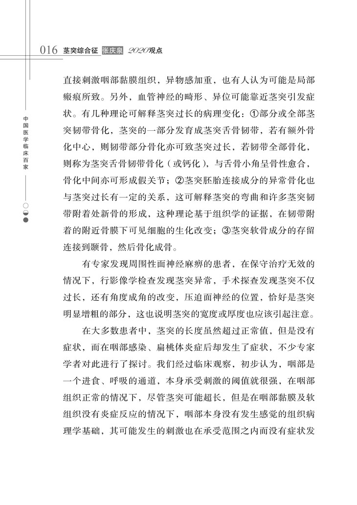 茎突综合征是牵扯影响到咽部、口腔、头颈部的疾病之一,产生的症状多种多样,有统一的症状体征,又有各自独立的奇特症状和特异的体征,在诊断治疗方面又有很多的意见不一致,以至于临床产生不少的误诊误治。多年来笔者对该疾病进行了基础和临床的研究,取得了一定的科学成果,发表了近20篇文章,在2部著作中发表了相关见解,并获得了厅局级的科技进步奖。现将内容整理成拥有完整体系的观点,以饕读者。