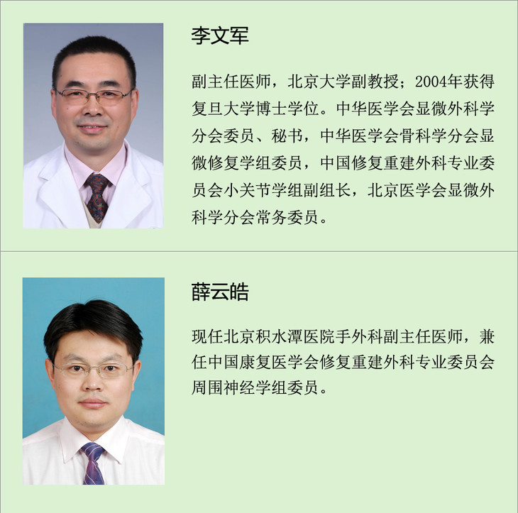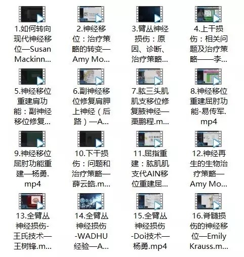 第一部分为神经移位授课视频,共16节。该部分主要就臂丛神经损伤后神经移位进行系统性教学,著名周围神经大家Susan Mackinnon视频授课并通过视频进行现场答疑,另外有北京积水潭医院和美国圣路易斯华盛顿大学多位富有经验的教授们的生动教学,分享他们的临床经验。