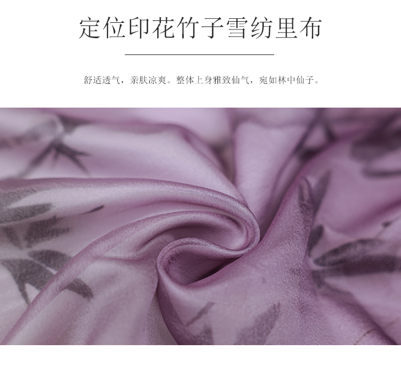 内衬是定位印花竹子雪纺,体感丝滑,透气凉爽。
