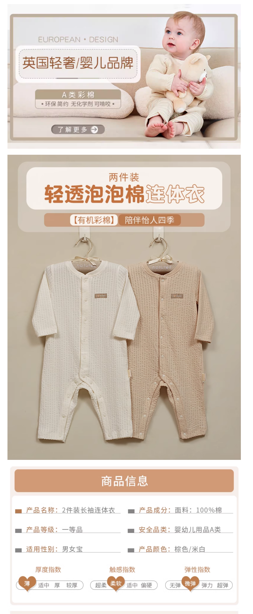 【云粉节】9楼英国natures purest(天然素彩)连体哈衣爬爬服婴儿纯棉薄款连体爬爬衣男女宝 吊牌价598元
