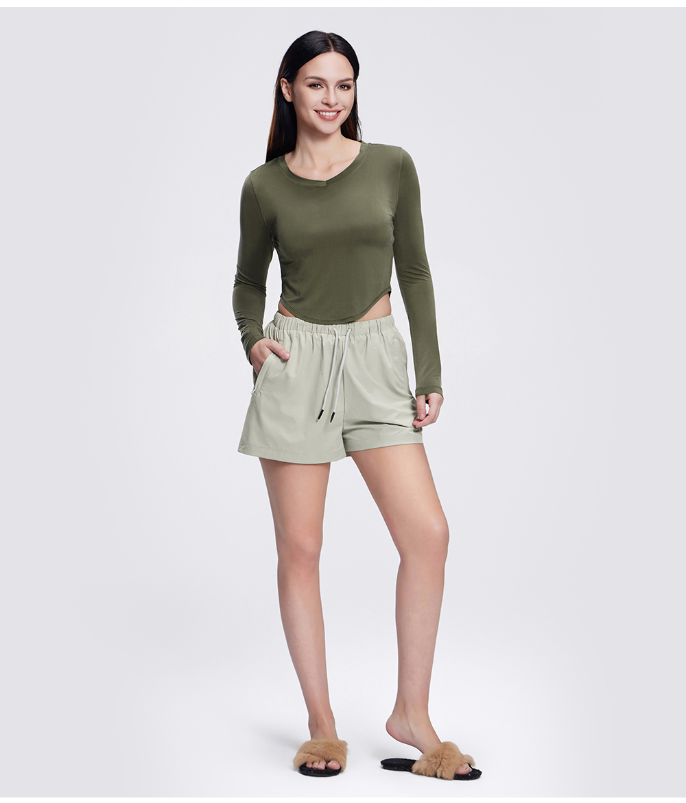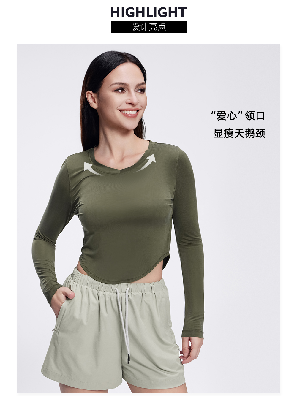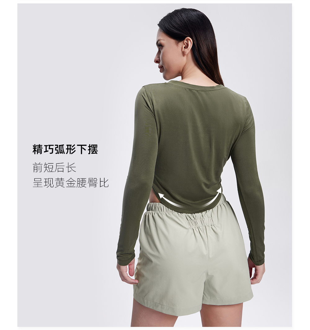 TITIKA弧形下摆长袖T恤女修身短款休闲运动上衣11129