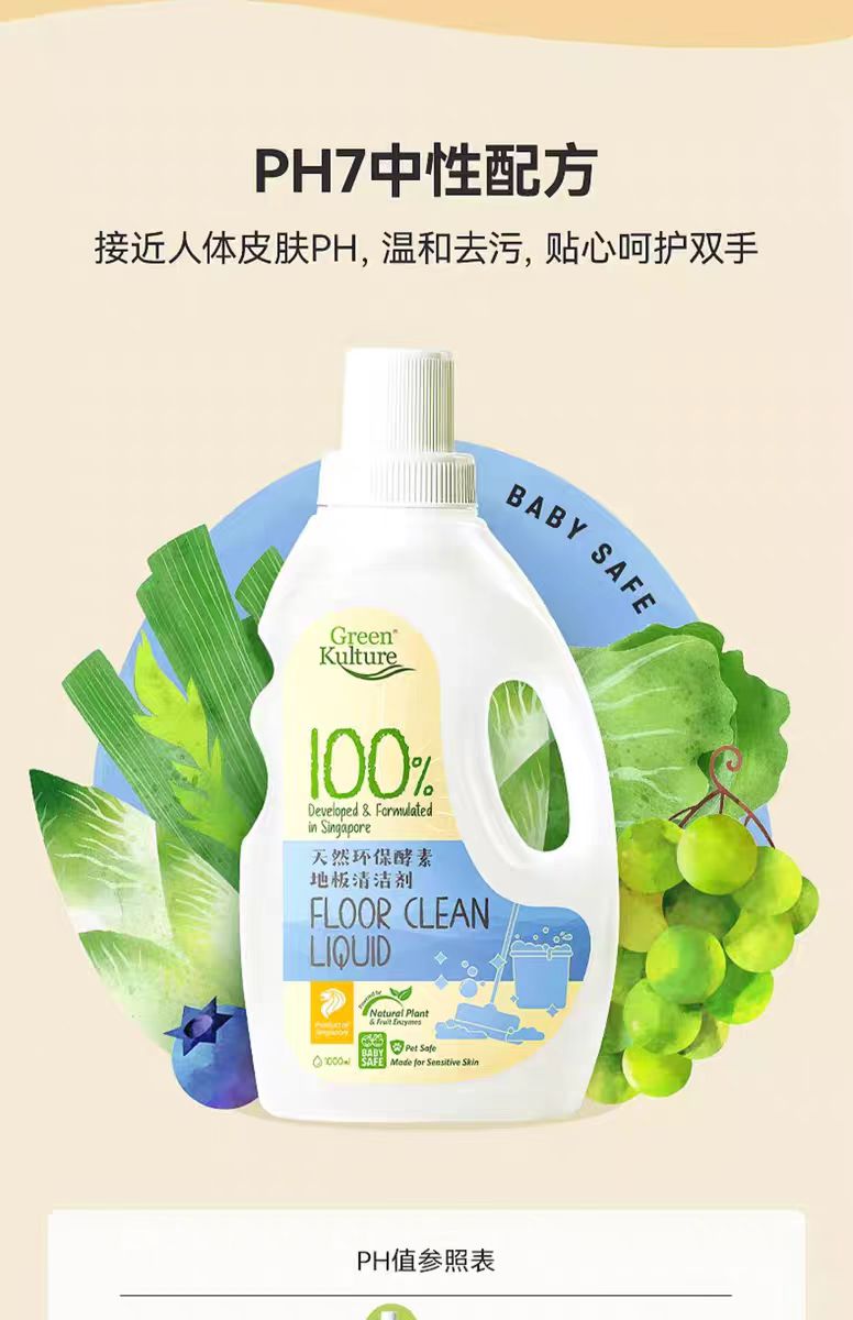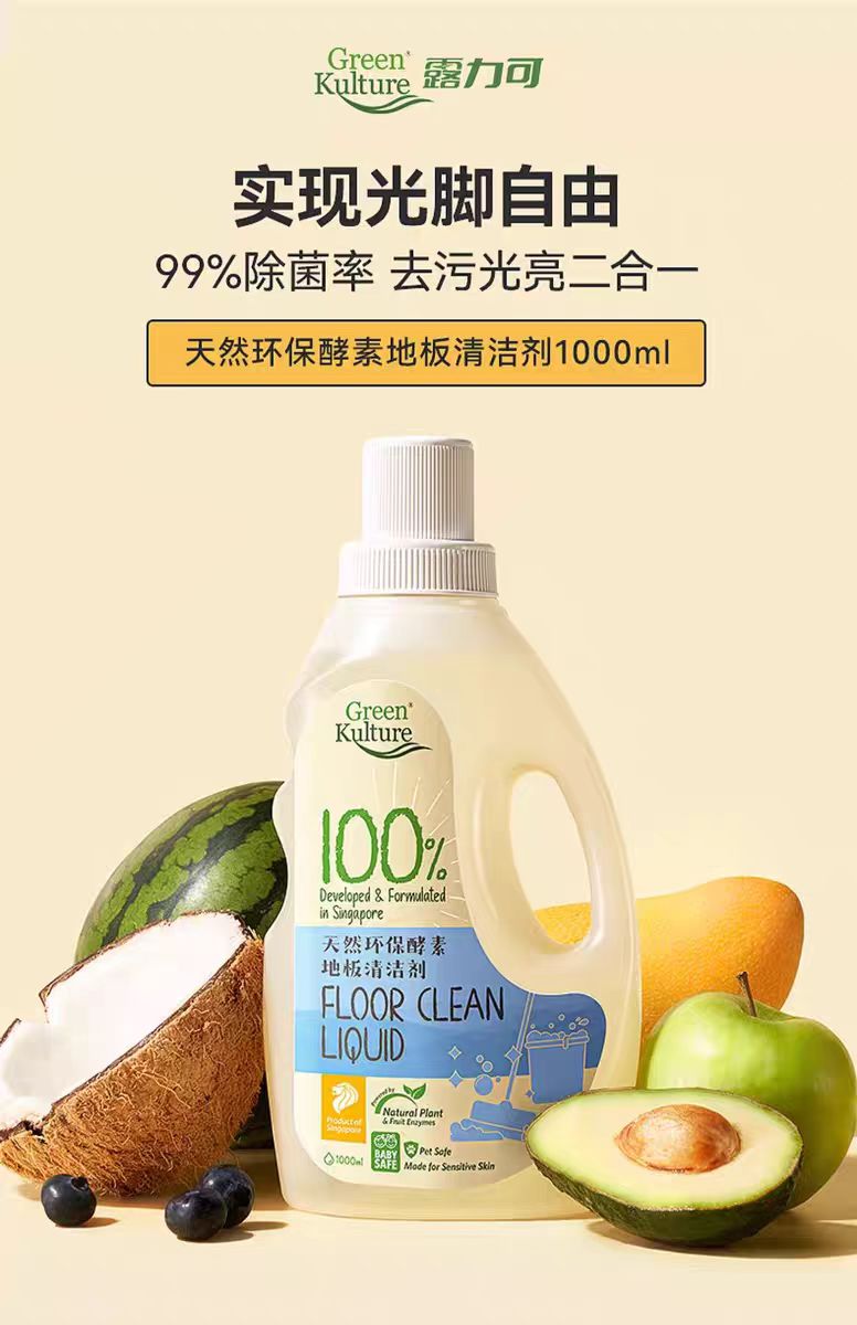 4楼Eubelle欧蓓 GreenKulture露力可天然环保酵素地板清洁剂1000ml 拖地机器人适用 活动价:139元