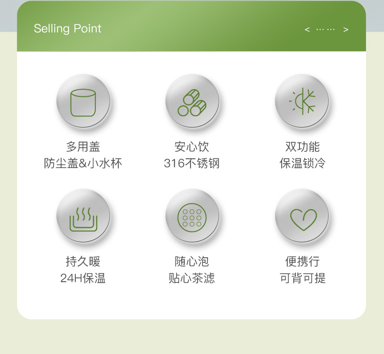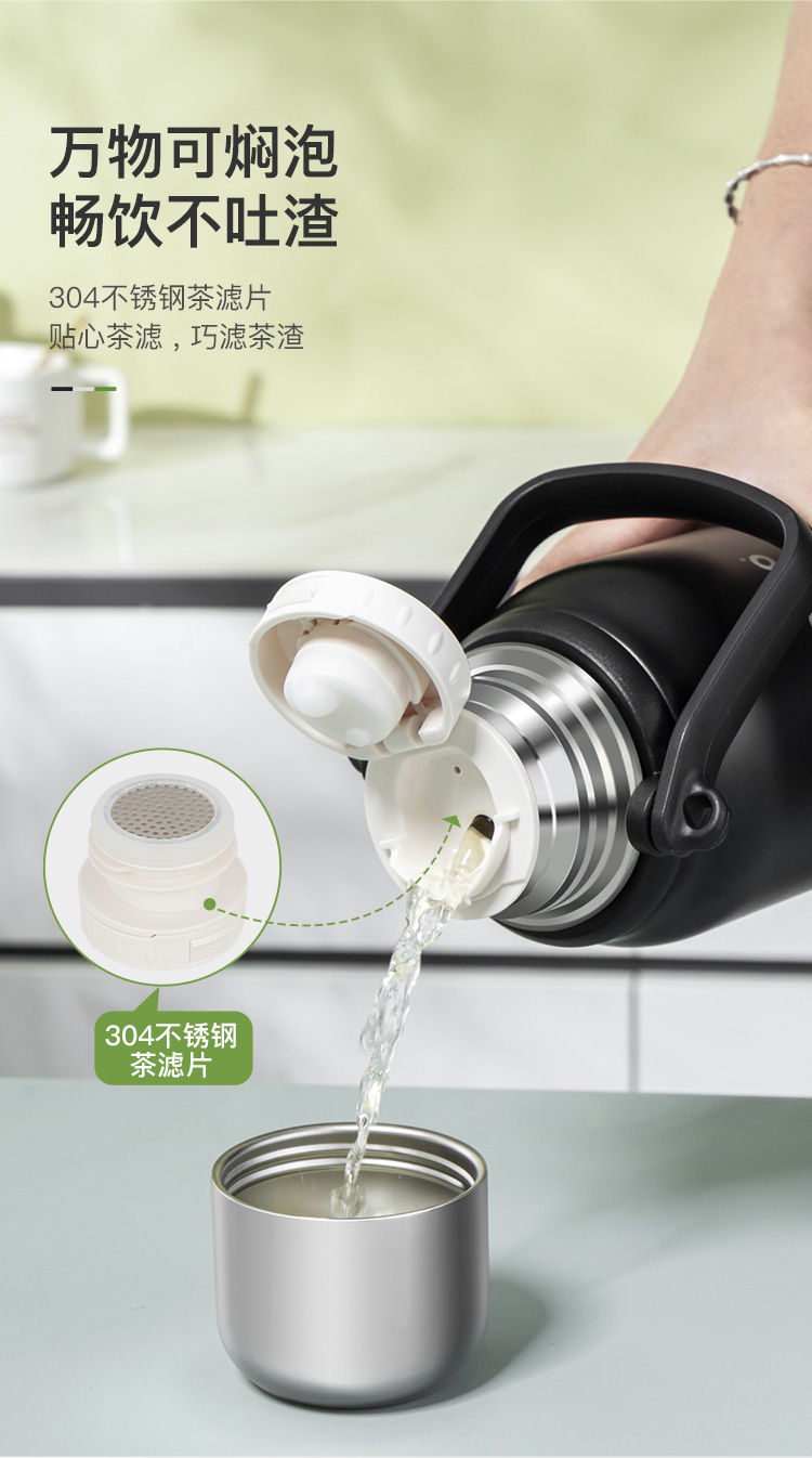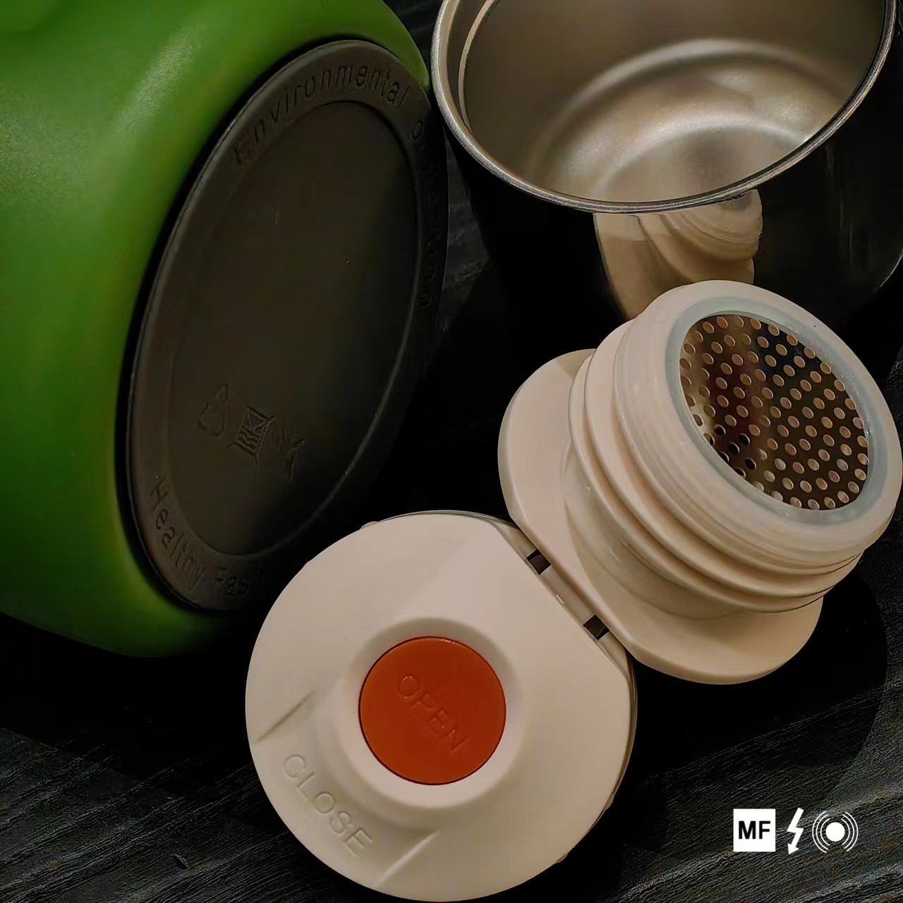 除了保温性能外,各种小细节也很到位哦!按压式内杯盖,单手一按即开,喝水很方便;而且内杯盖上还配备了一体的304的不锈钢茶滤片,泡万物皆可,倒出时自动过滤掉渣渣;杯盖也是一盖二用,还是个小杯子,水太烫直接倒到盖子里放放凉再喝,太贴心了!杯子底部是有加防滑的,放在桌子上大大降低不小心打翻的灾难,再加上多项严格的专业检测,用它喝水更放心!