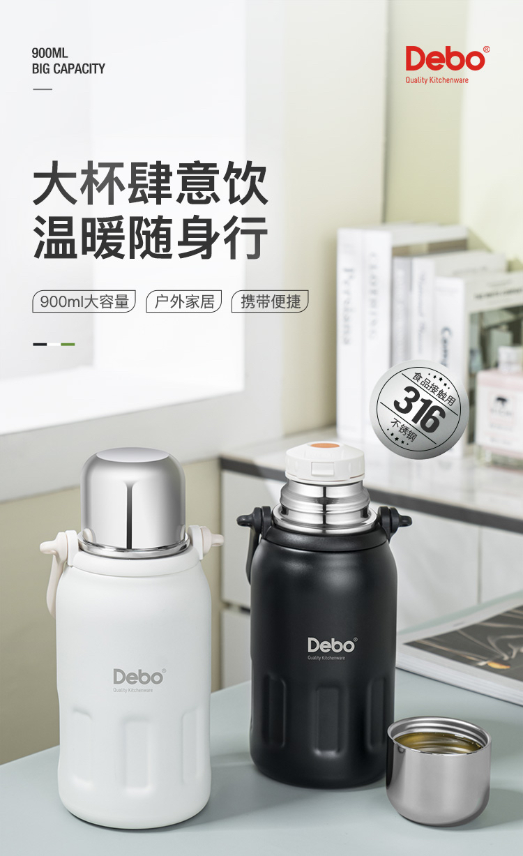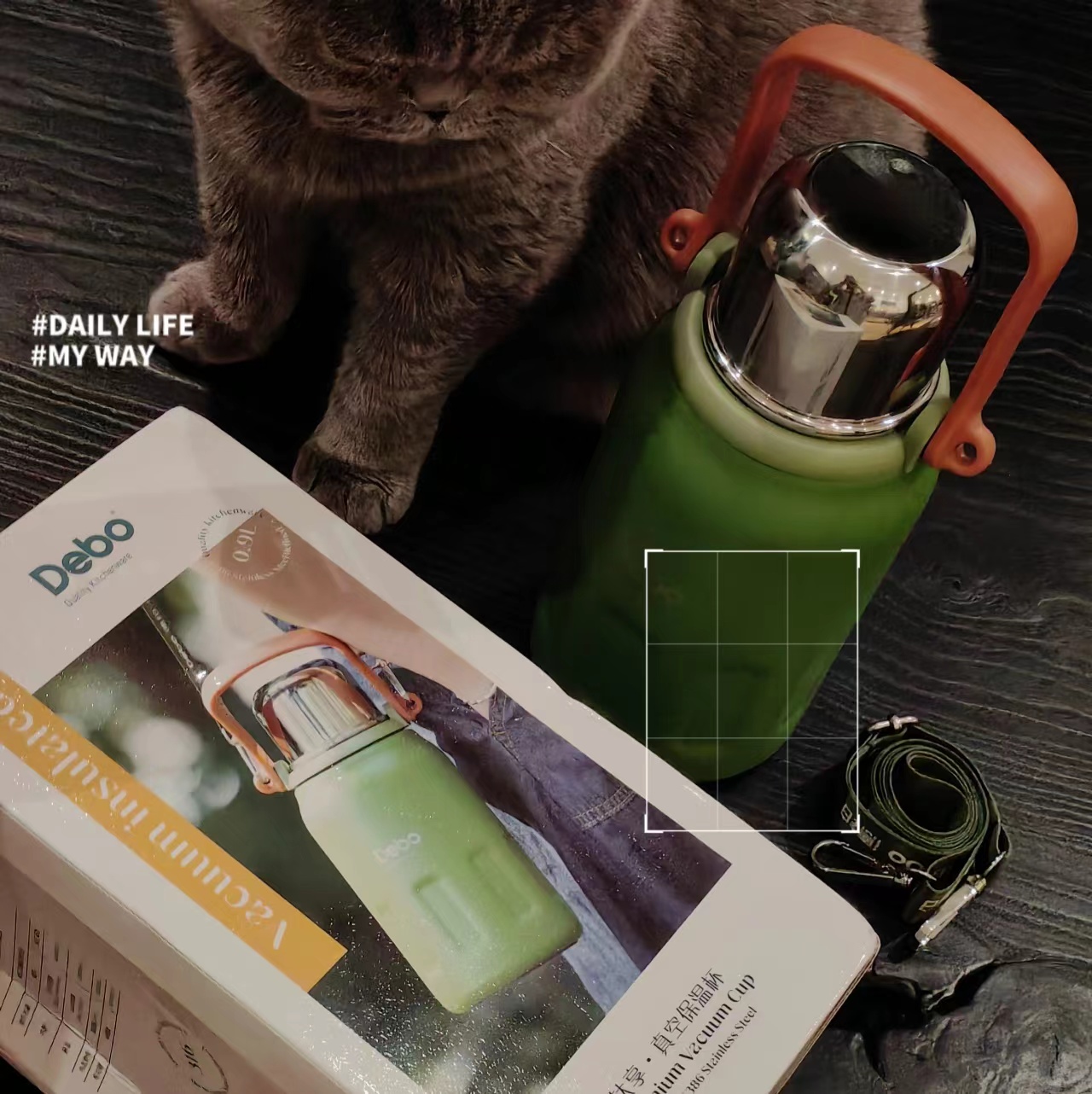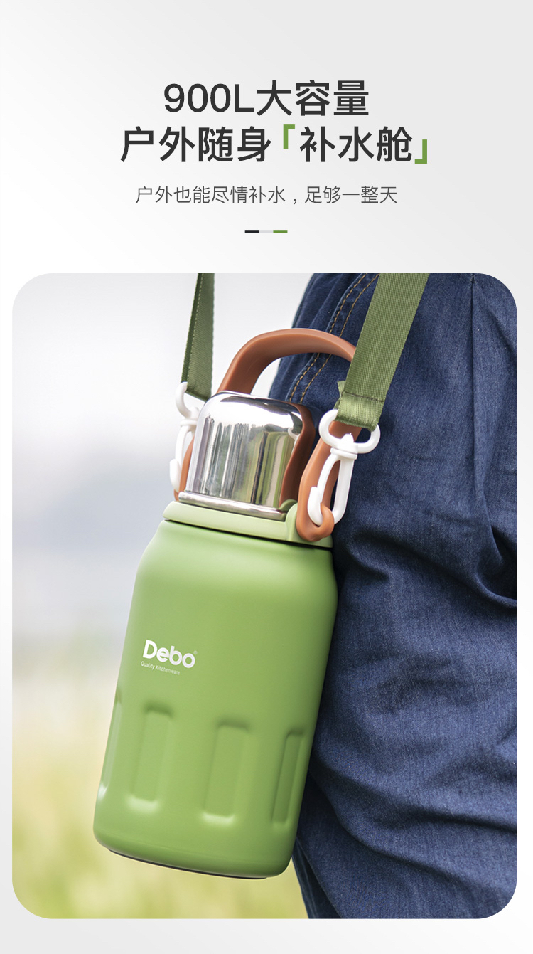 大大大保温杯又来咯!还是德铂Debo的哦,这次的是900ml大容量,24小时长效保冷保温,可拎可背,还有黑白绿三色,美貌!而且质感真的在线,很敦实,感觉摔几下也只会弹起,最喜欢的是,可以做杯子的盖还是双层的!