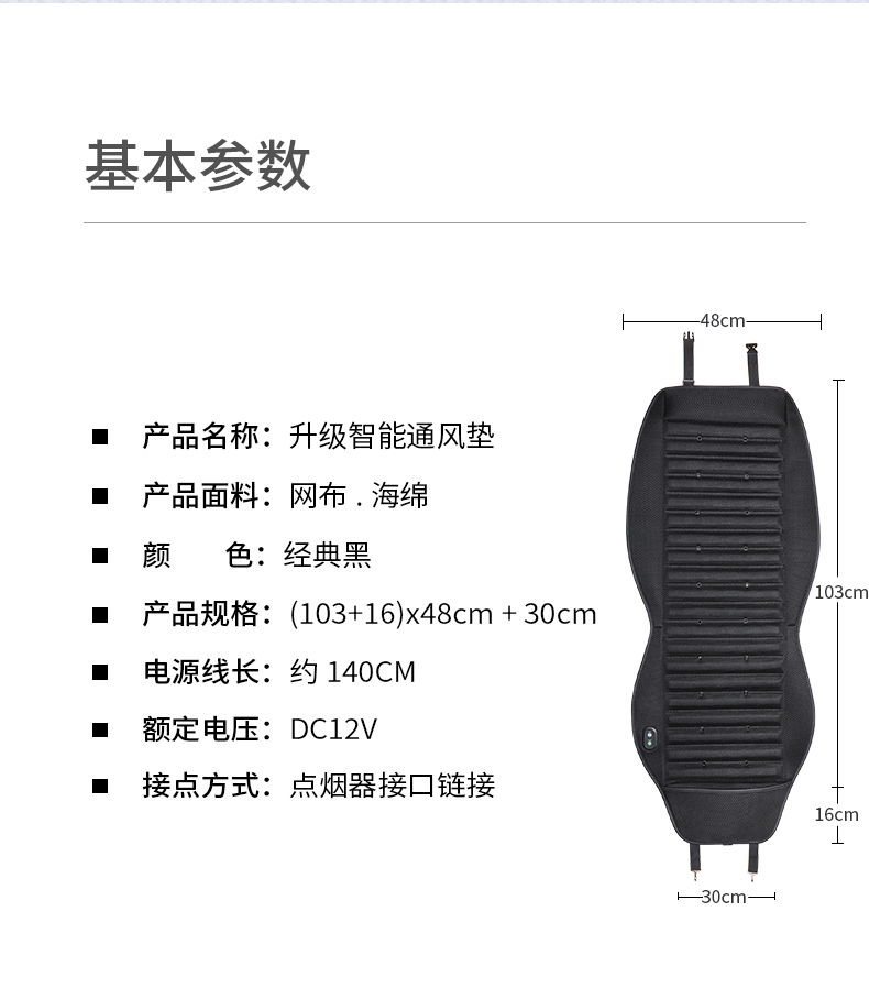 迈未 升级智能通风坐垫 三档风力 透气网布 标配12V点烟器