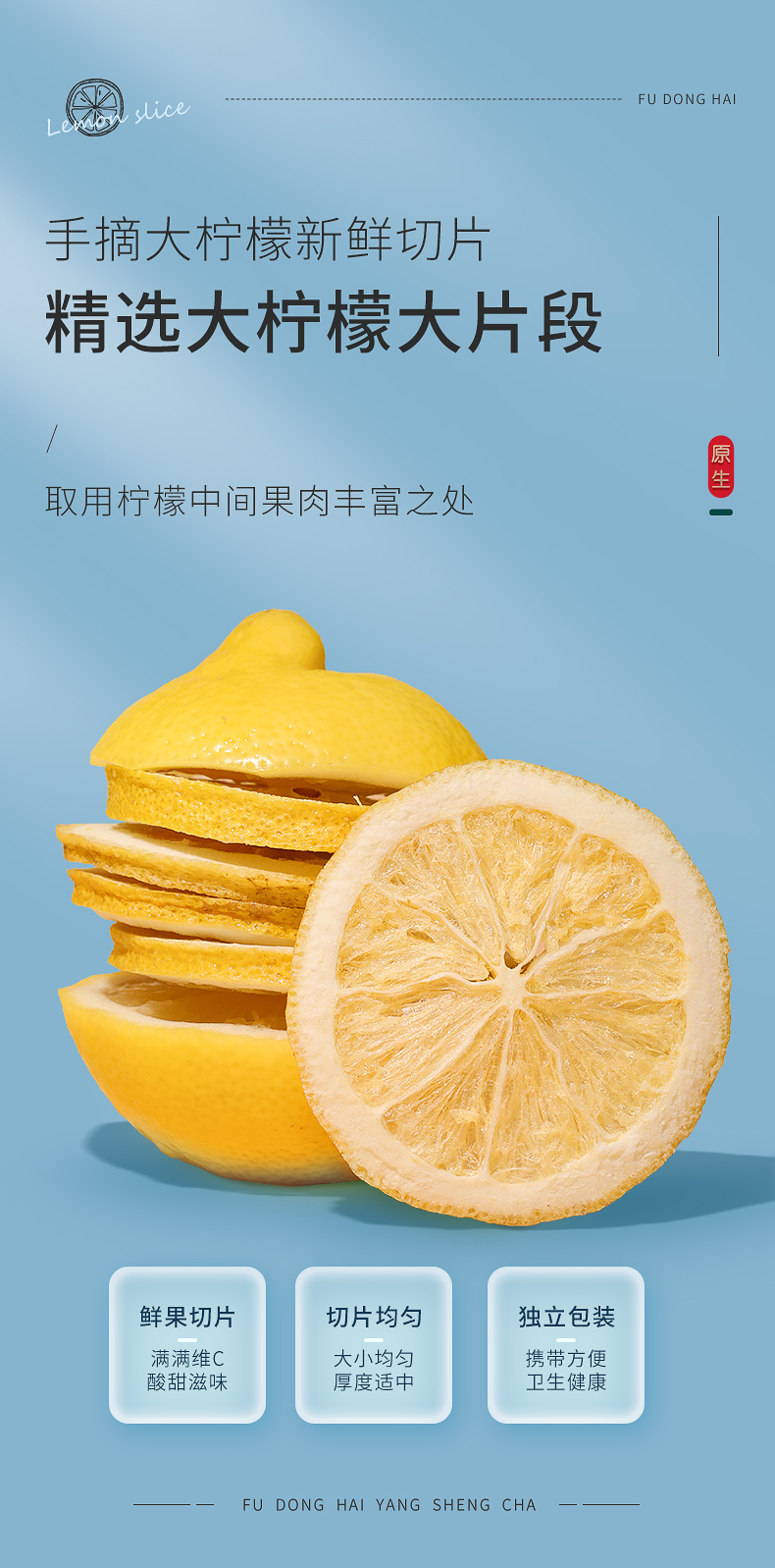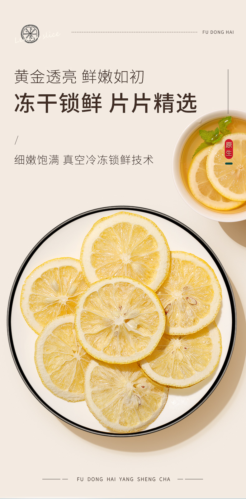 福东海 冻干柠檬片100克/盒独立包装冻干锁鲜柠檬茶水果茶花茶养生茶 干片大片
