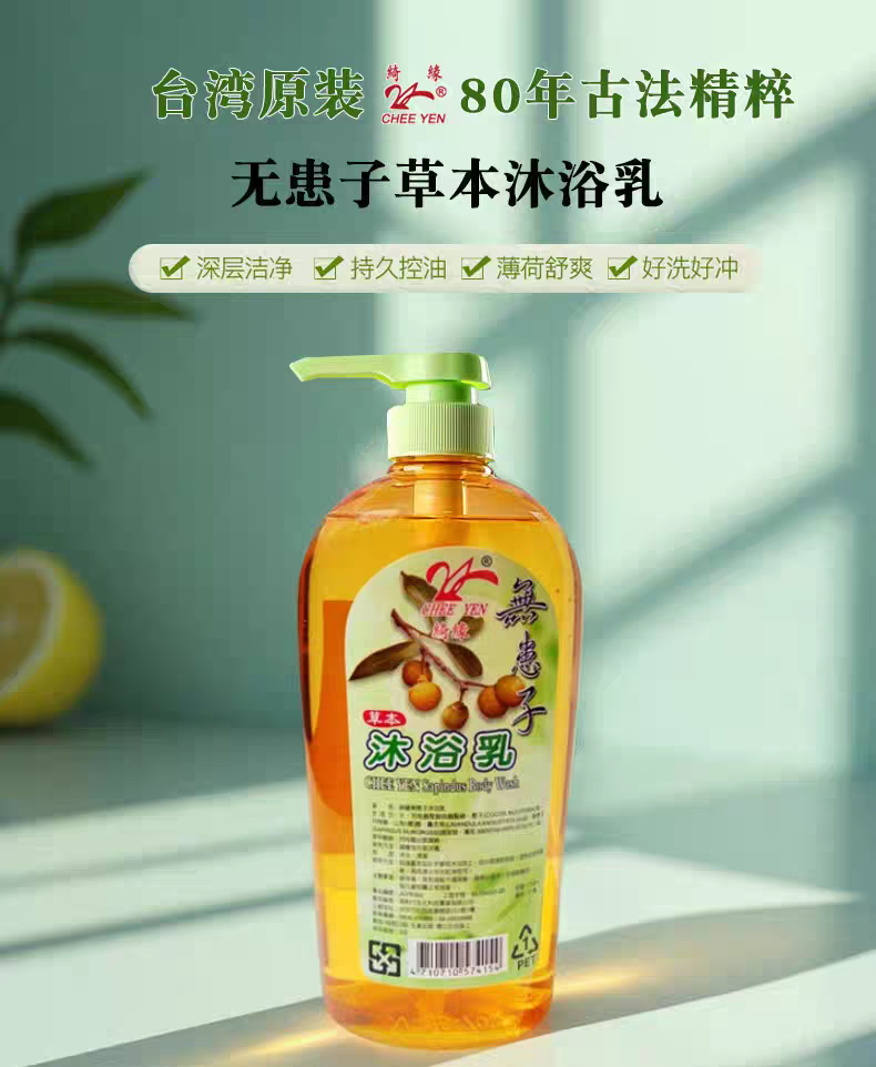 台湾天然无患子草本沐浴乳700ml 清凉薄荷补水控油