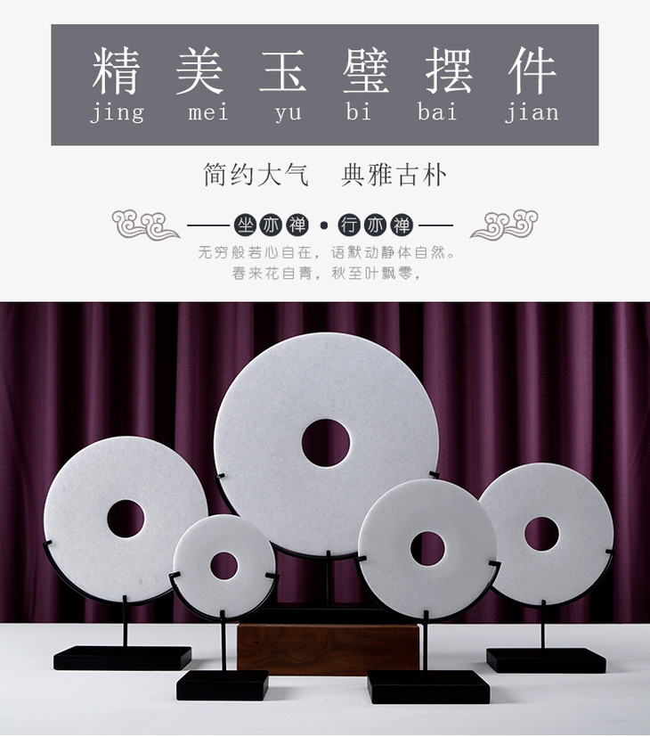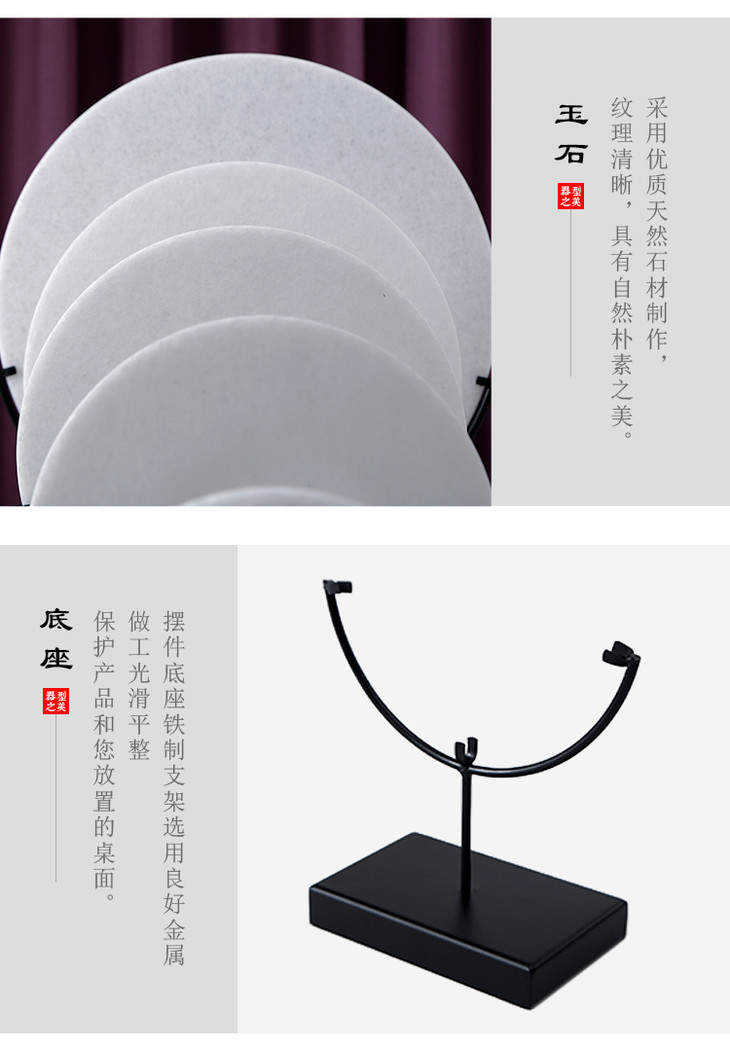汉白玉玉片+托饰品摆件 White marble disk with base