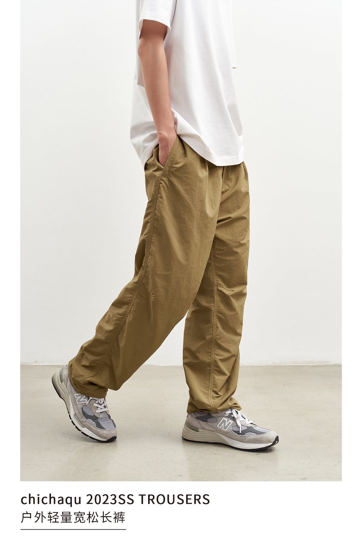 吃茶去chichaqu 宽松户外山系休闲抽绳直筒长裤