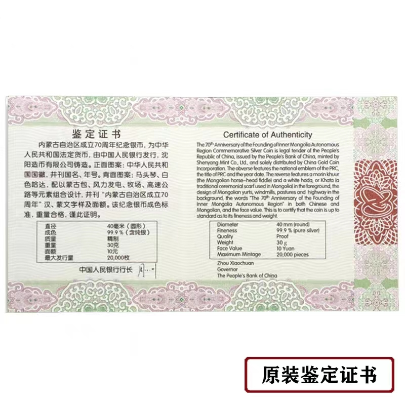 注意事项:纪念币为预定商品,市场行情波动或较大,一经预定,非质量问题不予退货退款