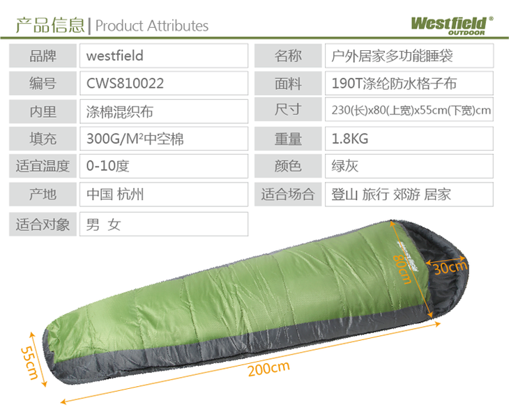westfield/我飞睡袋户外露营午休加厚成人秋冬保暖超轻野营睡袋