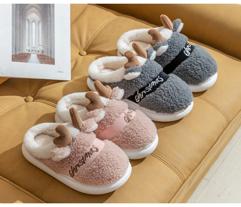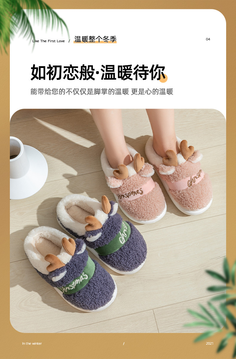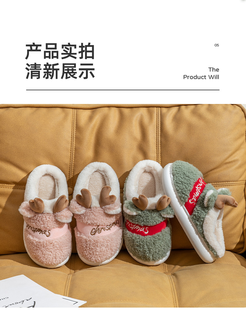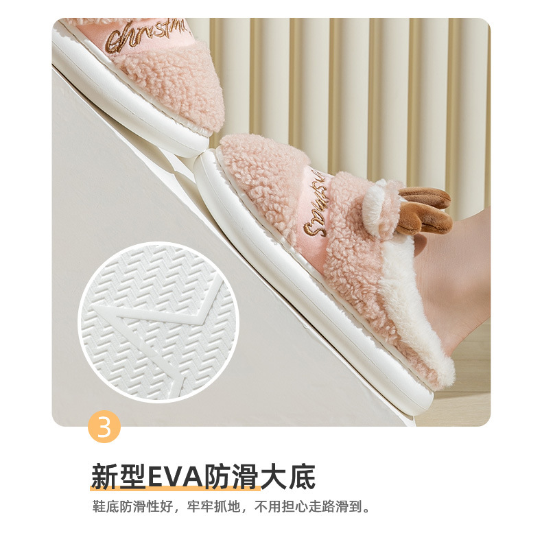 【圣诞小鹿 穿上萌气爆表】新款卡通棉拖鞋冬天圣诞鹿可爱居家室内家居厚底保暖拖 鞋情侣