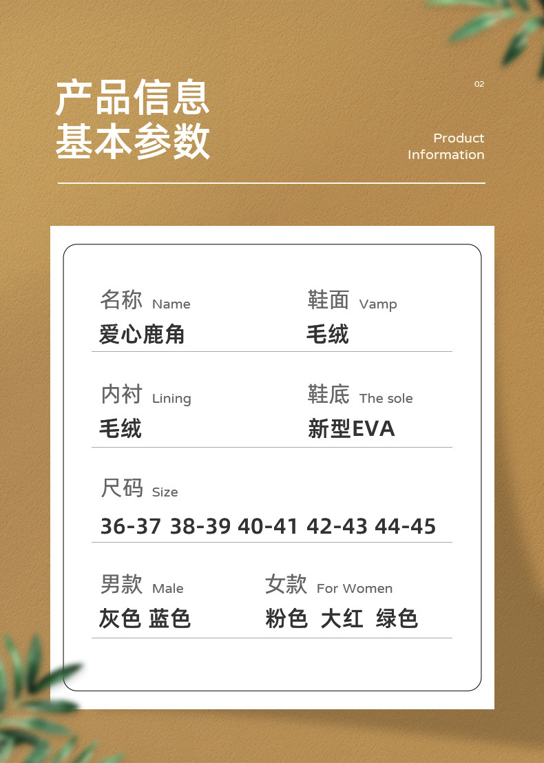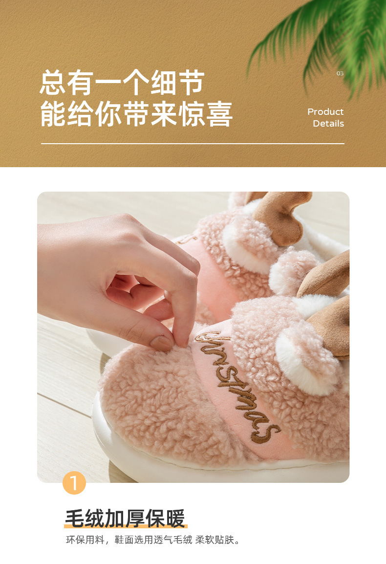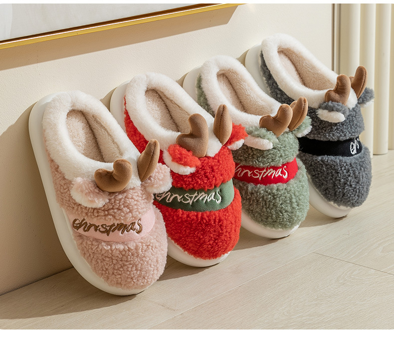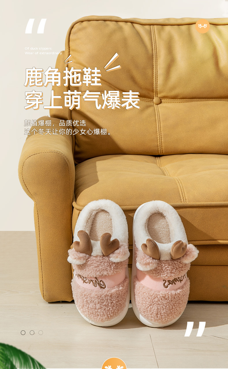 【圣诞小鹿 穿上萌气爆表】新款卡通棉拖鞋冬天圣诞鹿可爱居家室内家居厚底保暖拖 鞋情侣