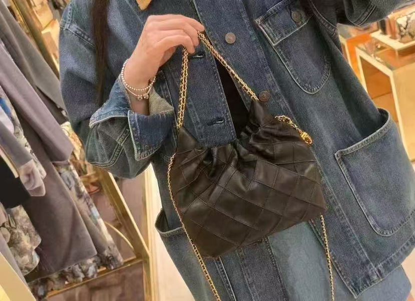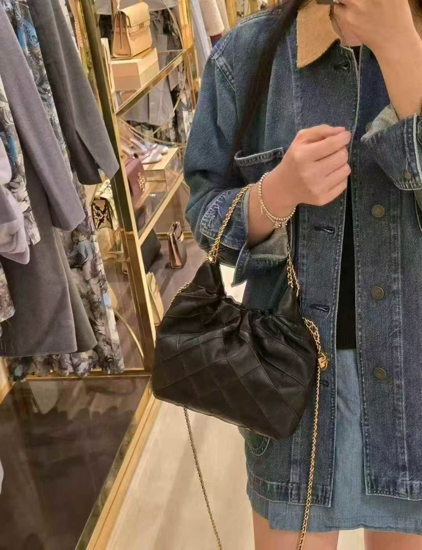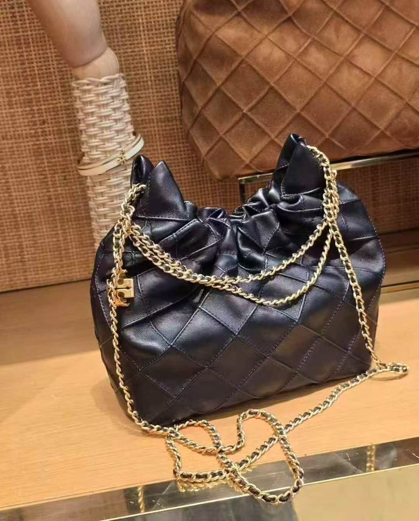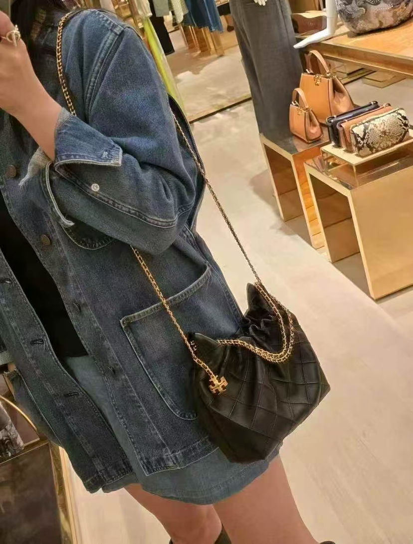💰3480✈️直邮,Tory burch专柜黑色mini垃圾袋,fleming软皮抽绳背包,可任意斜挎手提肩背,软羊皮超级有质感⚠️