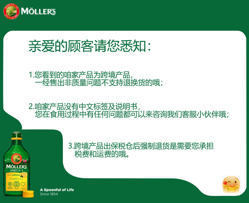 挪威百年品牌Mollers · 小鱼果冻 鱼油软糖omega-3+维生素D 可乐味/水果味 挪威原装进口|保税