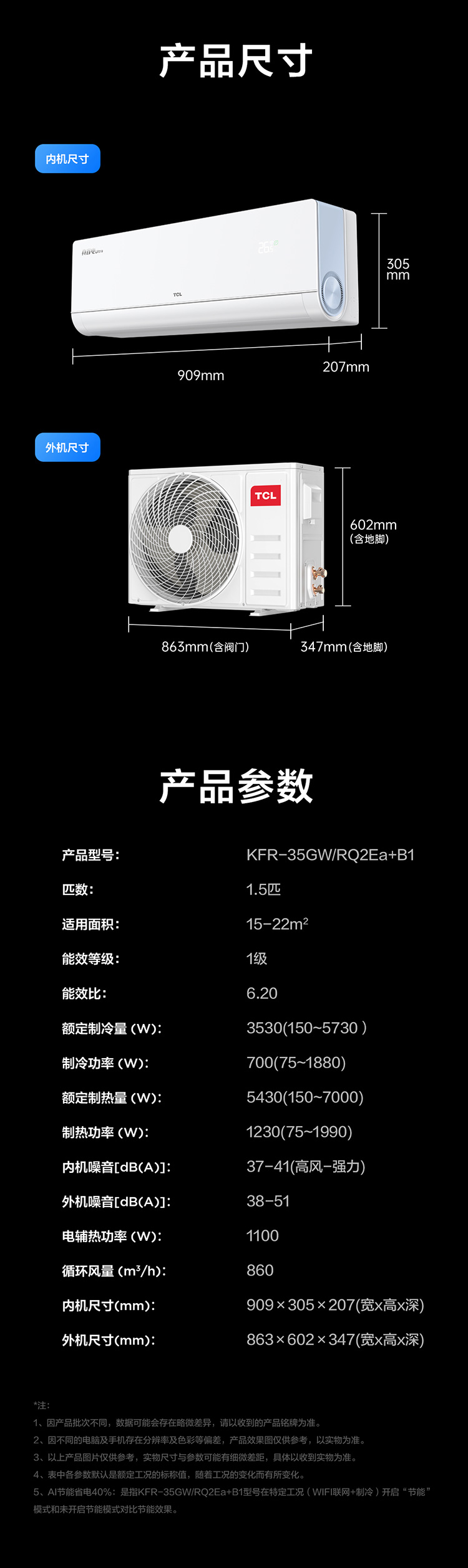 【新品上市】TCL 空调1.5匹小蓝翼真省电Ultra 空调挂机 超一级能效 省电40% KFR-35GW/RQ2Ea+B1