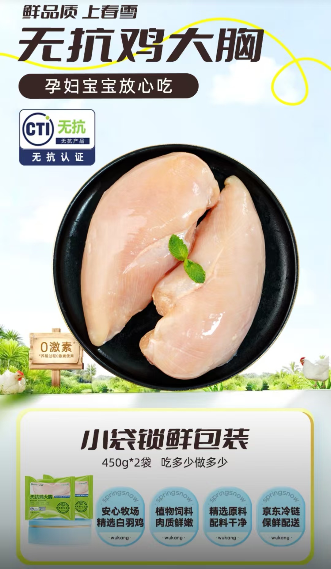 纯干无抗冷冻鸡胸肉鸡小胸 400g/袋
