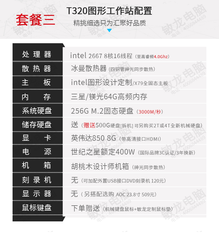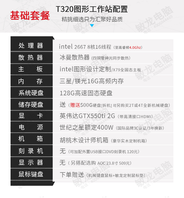 【敏龙电脑】T320 图形工作站/超高性价比/8核16线程(产品成色:99新)