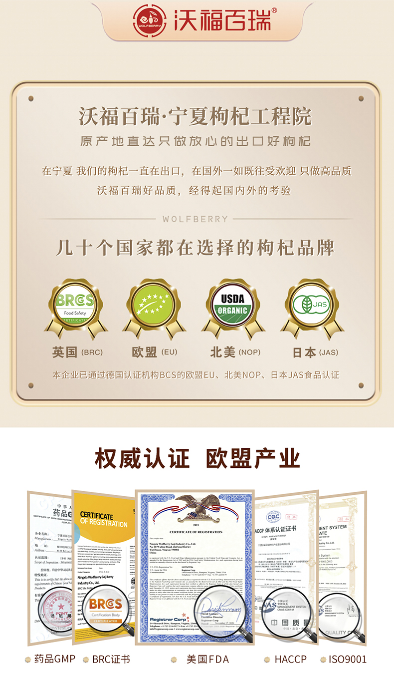 宁夏沃福百瑞是有机枸杞生产专家,枸杞养生专家。国际品牌枸杞产品的缔造者。