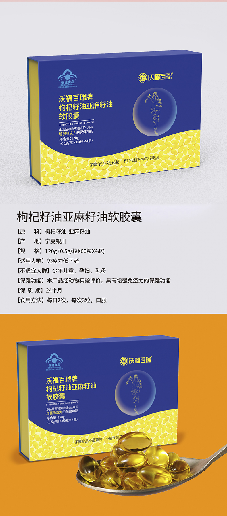 沃福百瑞枸杞籽油亚麻籽油软胶囊保健品礼盒装