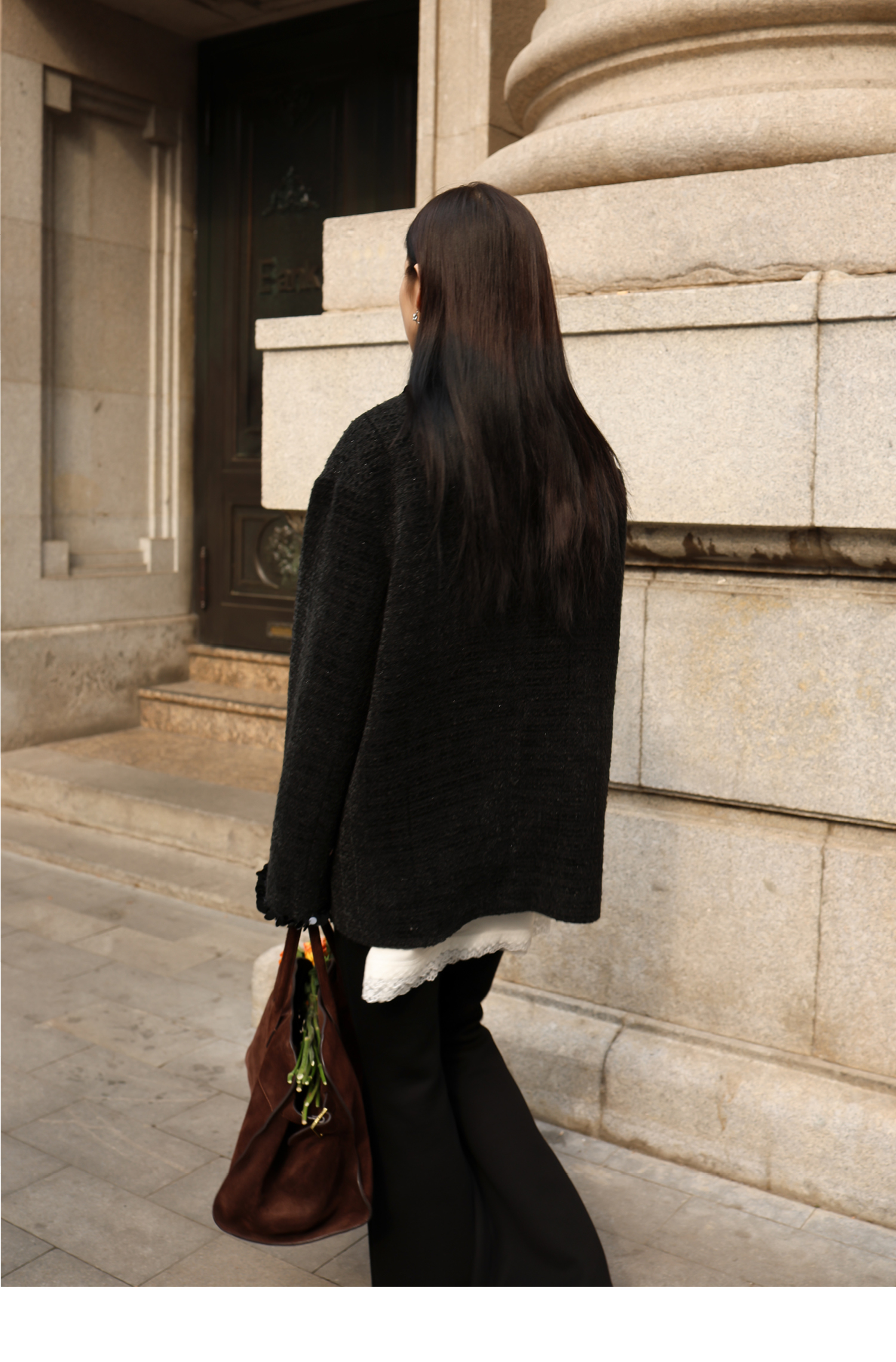 【8/6新品】素舶空气感软糯绞花光泽贝壳扣多色羊驼毛针织开衫