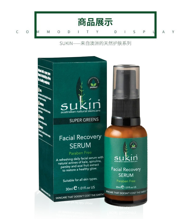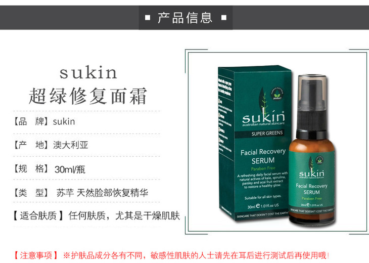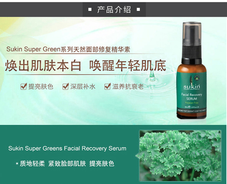 (永久下架)澳洲Sukin苏芊 超绿色天然面部修复精华(绿色) 30ml