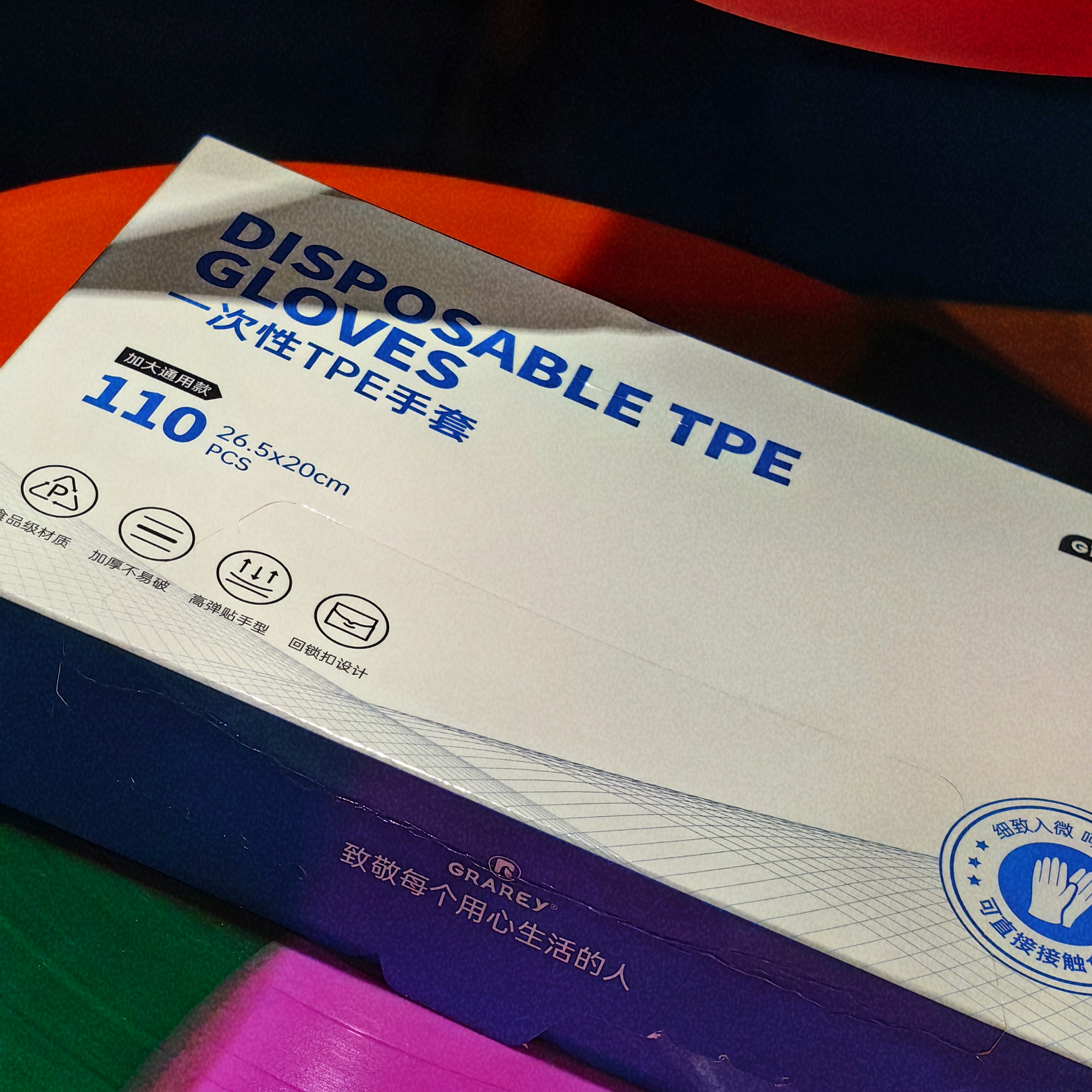 [屁侠推荐]GRAREY 一次性TPE手套 食品级材质 加厚不易破 防滑耐热 110枚/盒