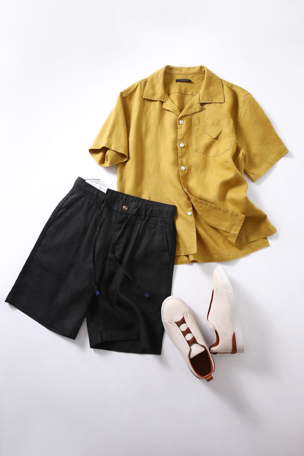 【很高级,非常高级男裤】100法国雨露亚麻!2025意式绅装意式老钱风夏季男士柔软透气宽松短裤