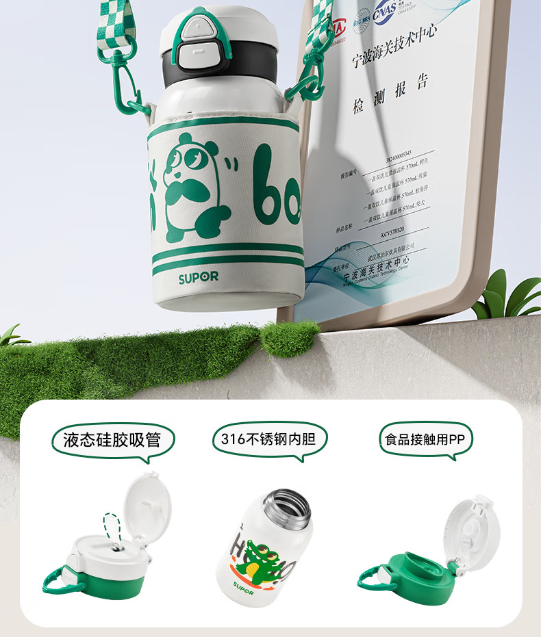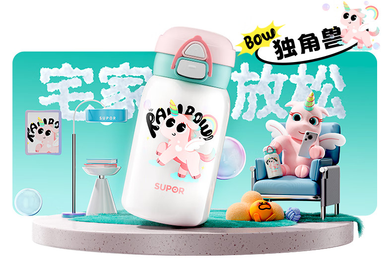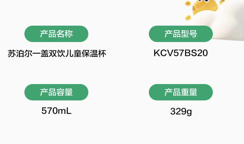 SUPOR苏泊尔一盖双饮儿童保温杯KCV57BS20独角兽