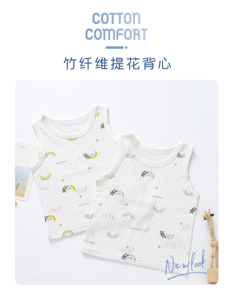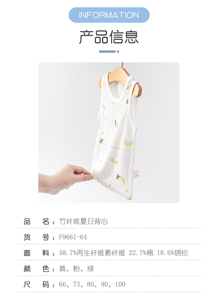 【婴儿竹纤维提花背心】透气夏季薄款新生儿宝宝幼儿内穿护肚上衣9661-64