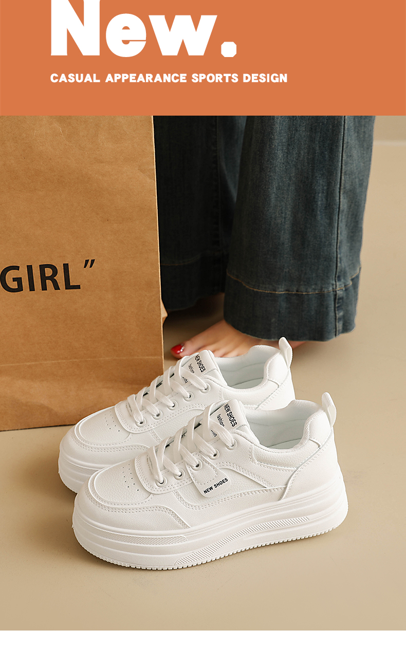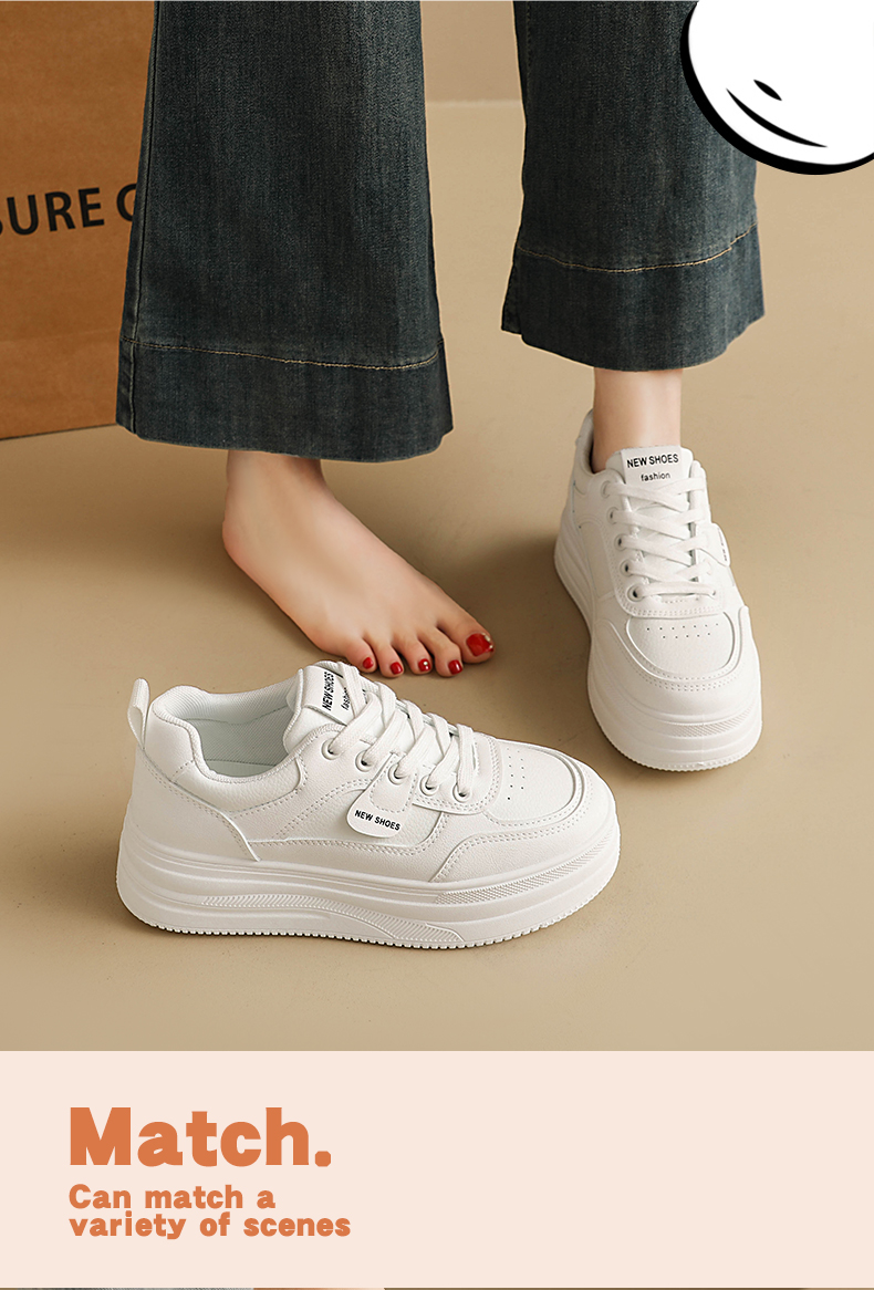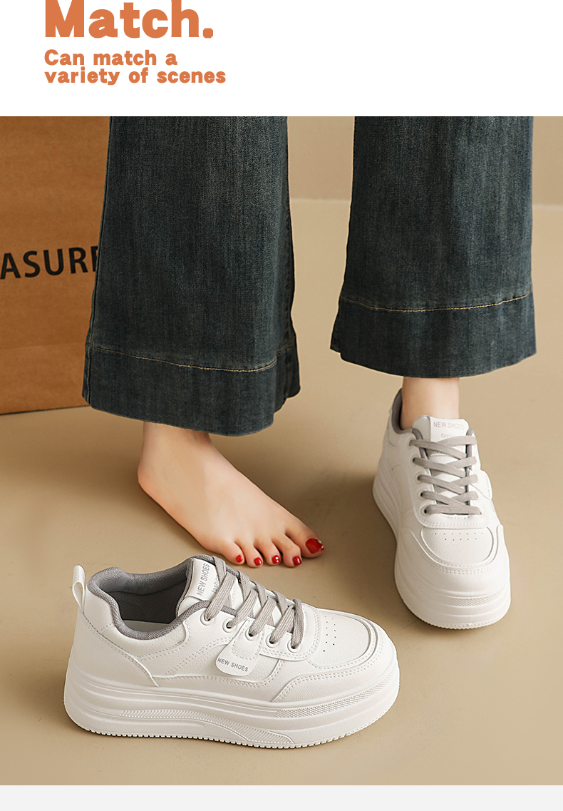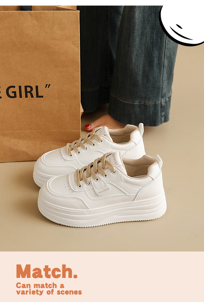 MZT 【春款厚底小白鞋】跟高5.5cm左右,透气不闷脚,不臭脚,不磨脚、包裹性好,高颜值百搭!#L