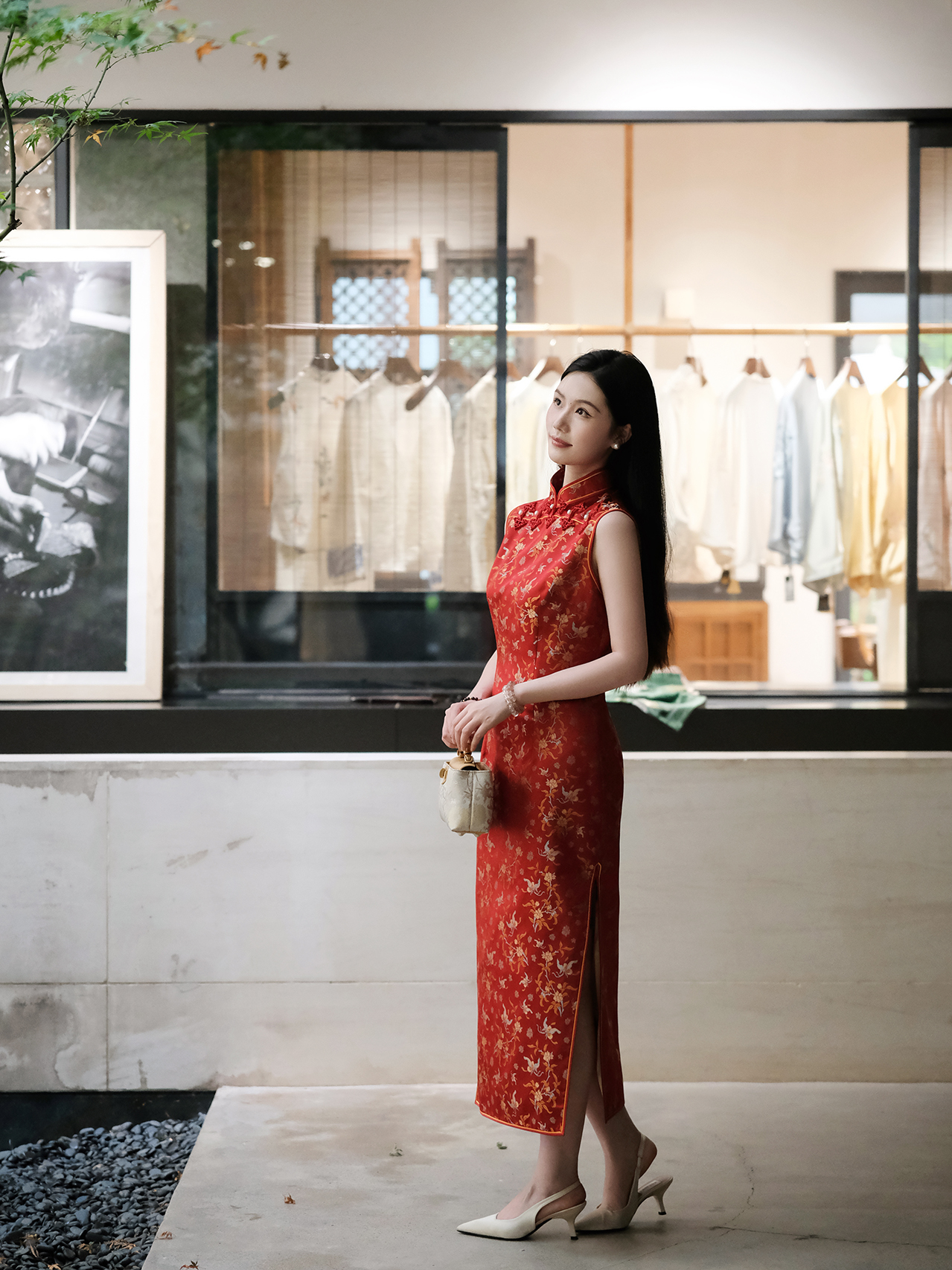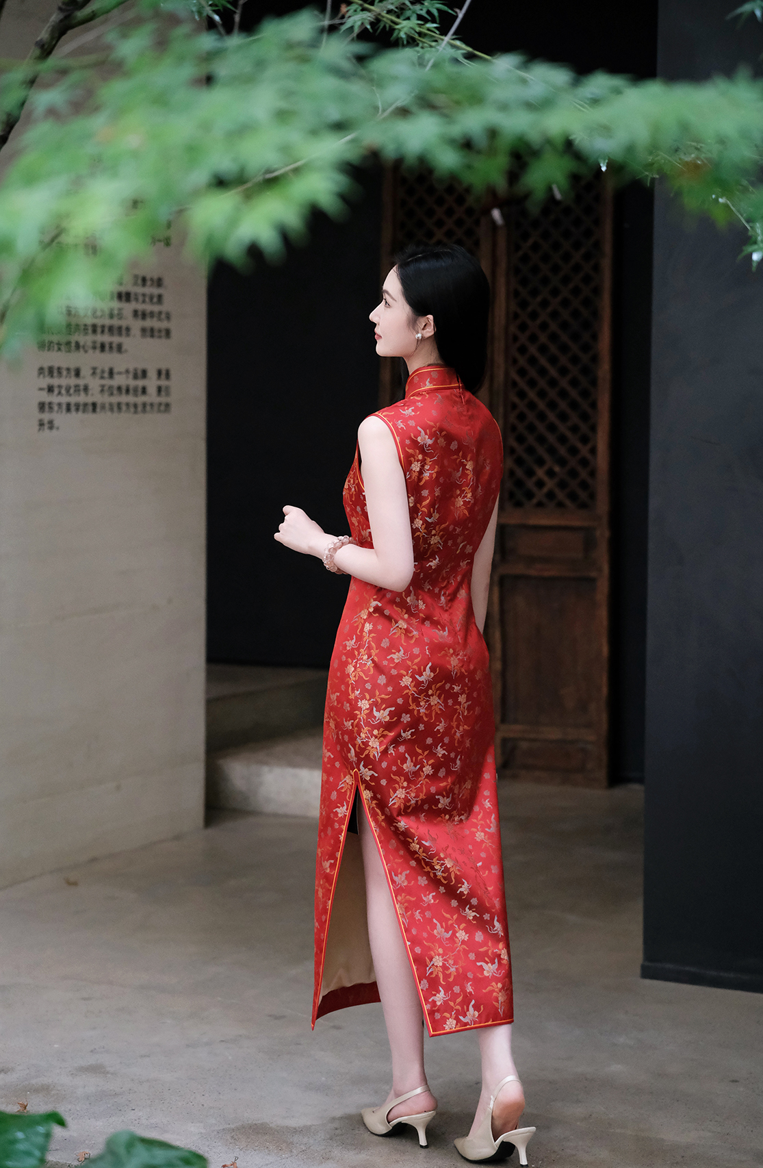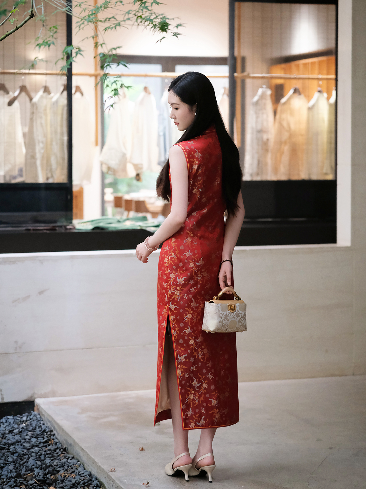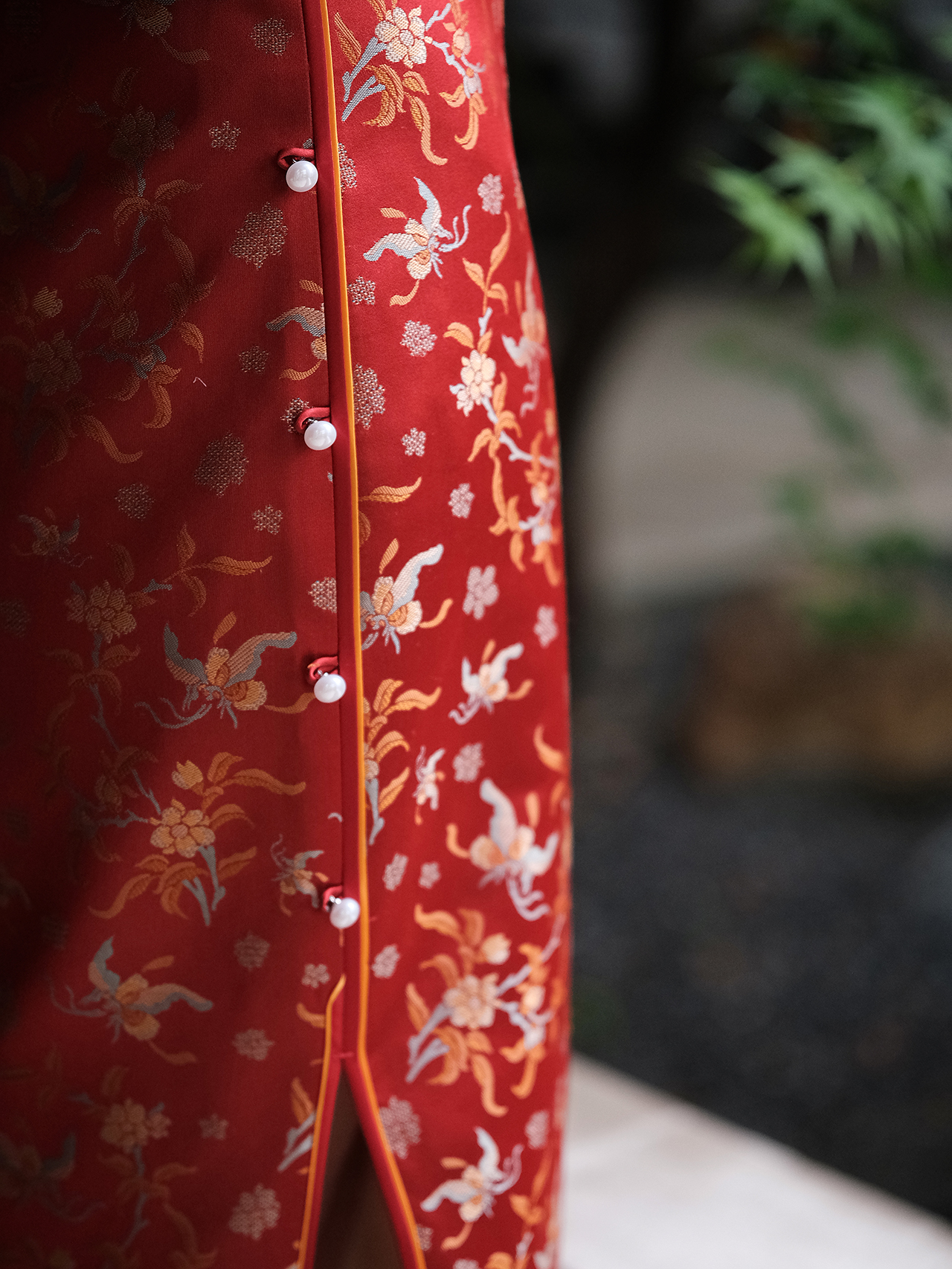 盛唐牡丹|花开祥瑞真丝宋锦旗袍裙