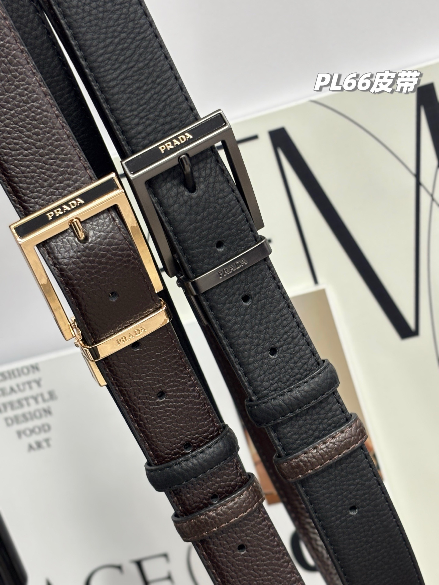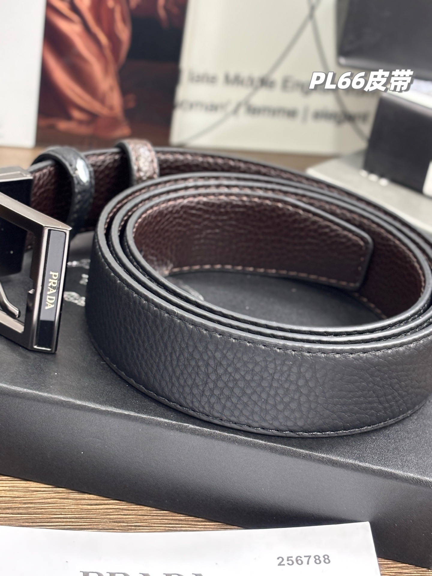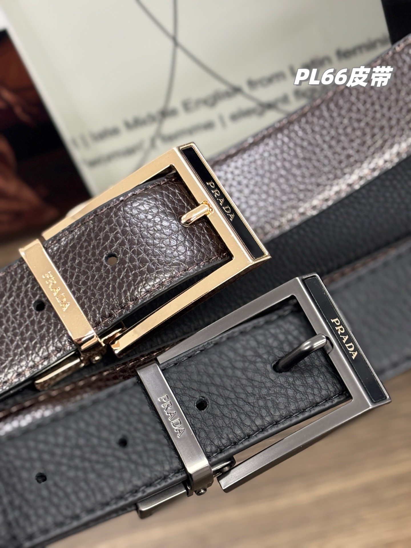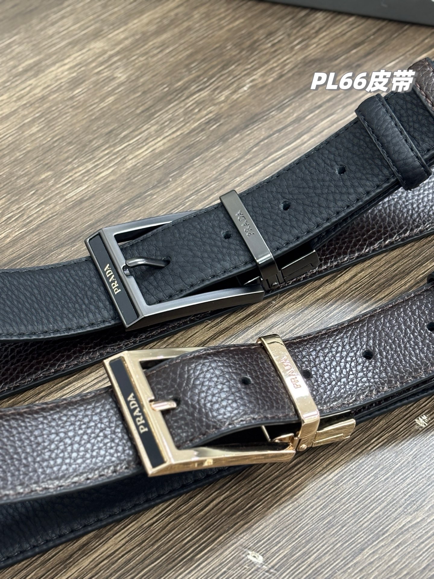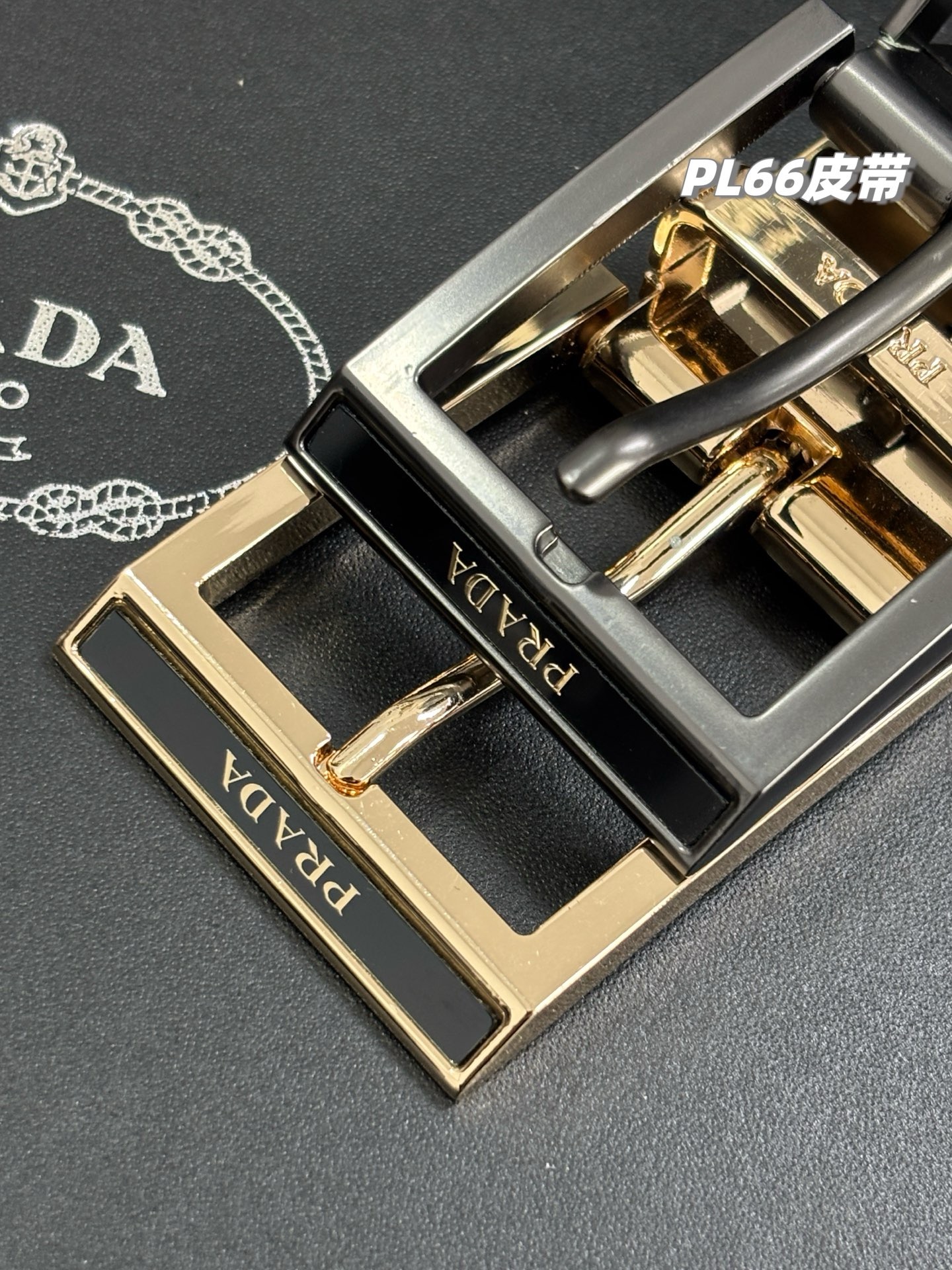谱拉达PRADA男士双扣双面腰带,男士皮带礼盒装,一盒搭配2个可旋转扣头