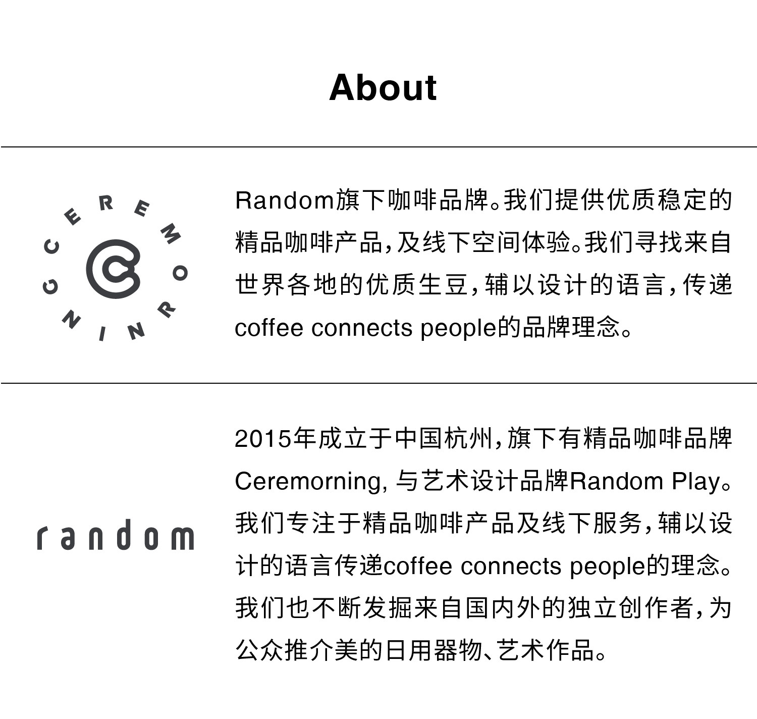 - Random是结合café与独立艺术设计的复合空间。我们致力于提供新鲜有机的饮品、甜点与沙拉,同时,也致力于引进国内外设计师的作品,并定期举办创意活动。希望倡导一种随心而至、健康精致的生活方式。